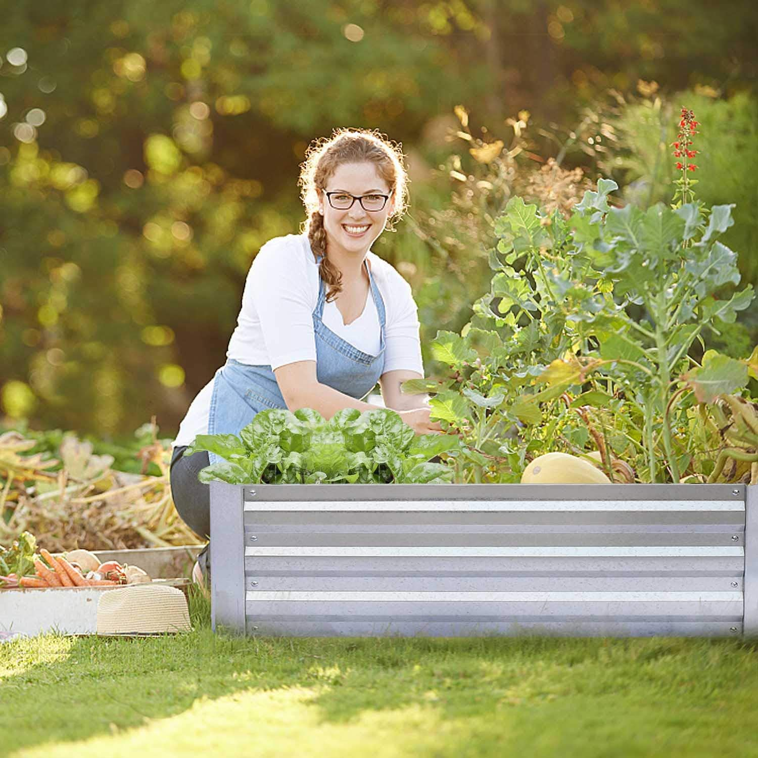 FOYUEE Galvanized Outdoor Steel Metal Raised Garden Beds for Vegetables, Gray