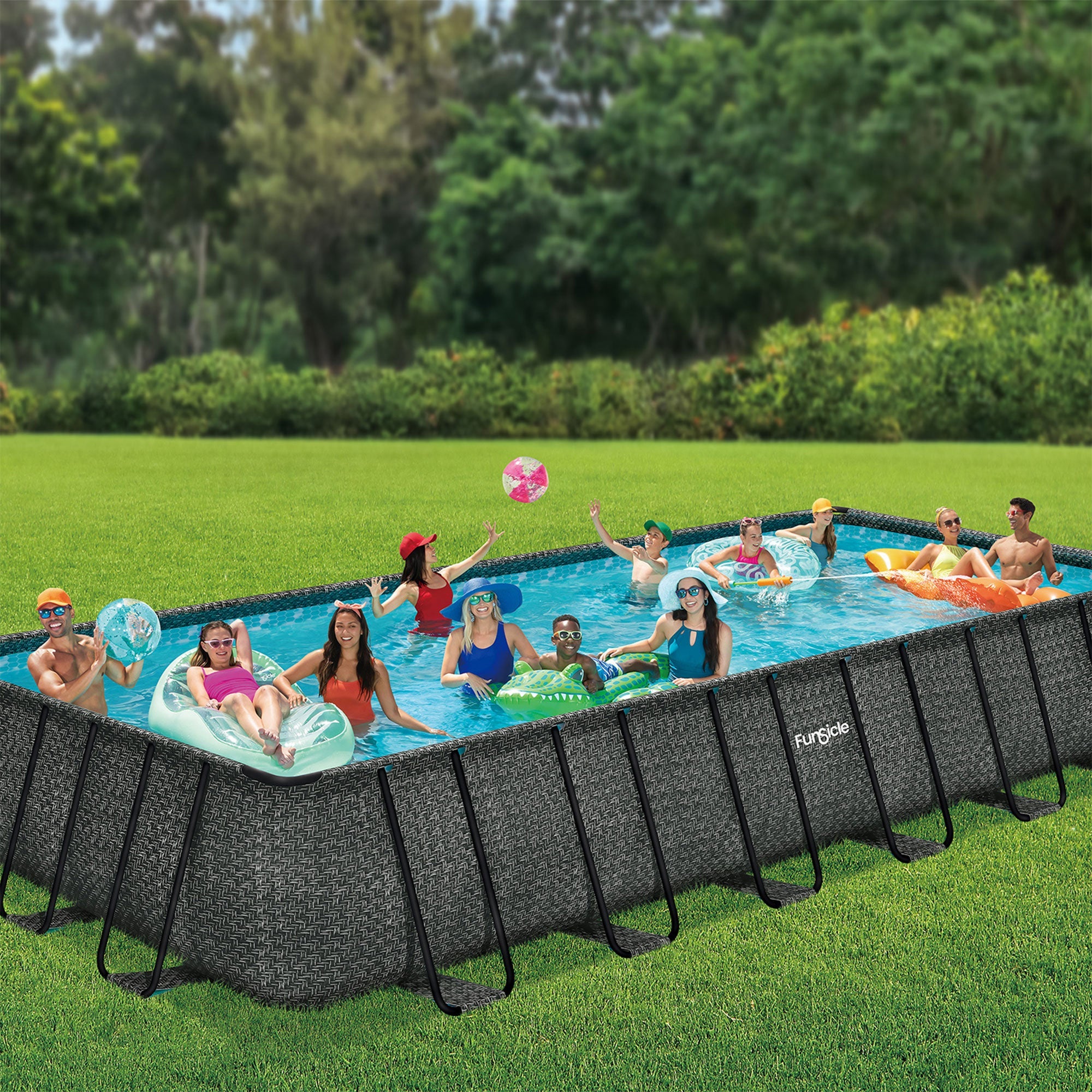 - Rectangular 24-by-12-foot above-ground pool gives kids and adults a space to relax or take laps for your exercise routine