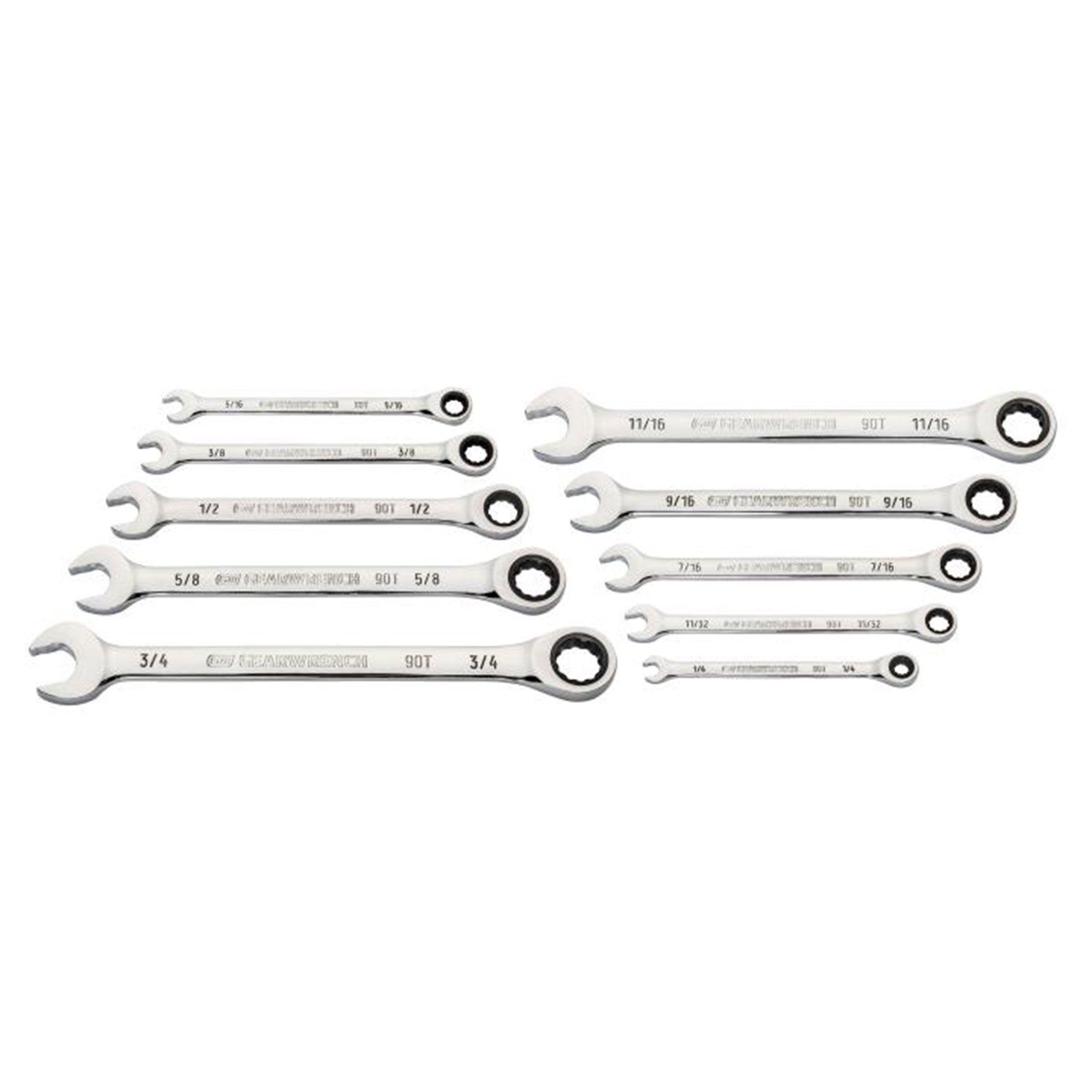 GEARWRENCH 10 Piece 90 Tooth SAE Ratcheting Wrench Set, 12 Point Box End, Chrome