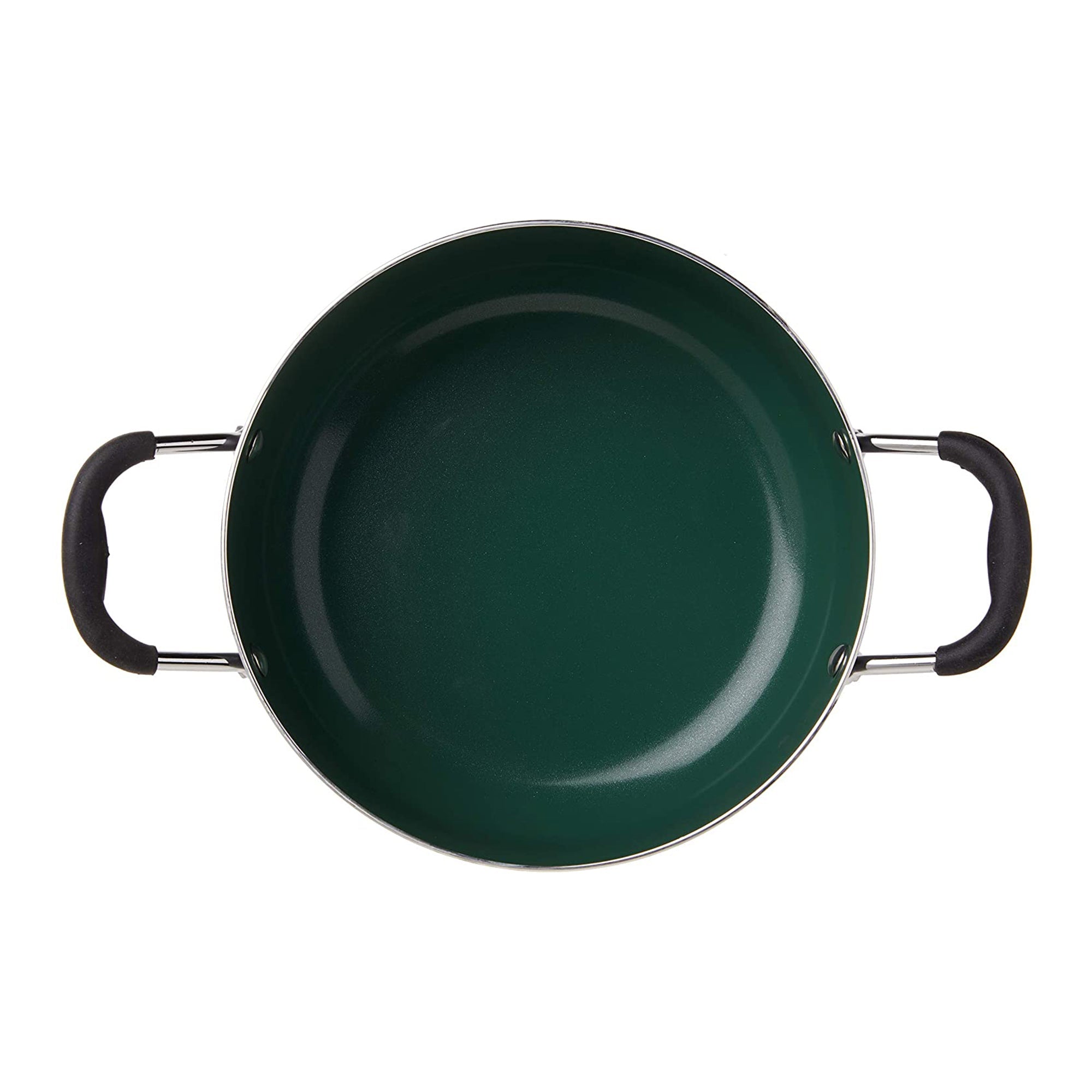 From the stovetop to your kitchen table in a single swift motion, you can use this aluminum pot to braise, boil, brown, and serve delicious meats, pasta, soups, stews, and other foods. Using superior heat distribution, this pot ensures even cooking temperature throughout your dish and keeps food warmer for longer. Heavy-duty construction and ceramic coating make this pan perfect for everyday use. The tough exterior is coated with heat-resistant paint that withstands all types of wear and tear. Don't lose your grip while cooking with the pot's comfortable and secure Bakelite soft-grip, heat-proof side handles. The ceramic interior coating makes this cooking pot easy to hand-clean and promotes healthy low-fat cooking with no need for oils. The pot is also dishwasher-safe for even more convenience.