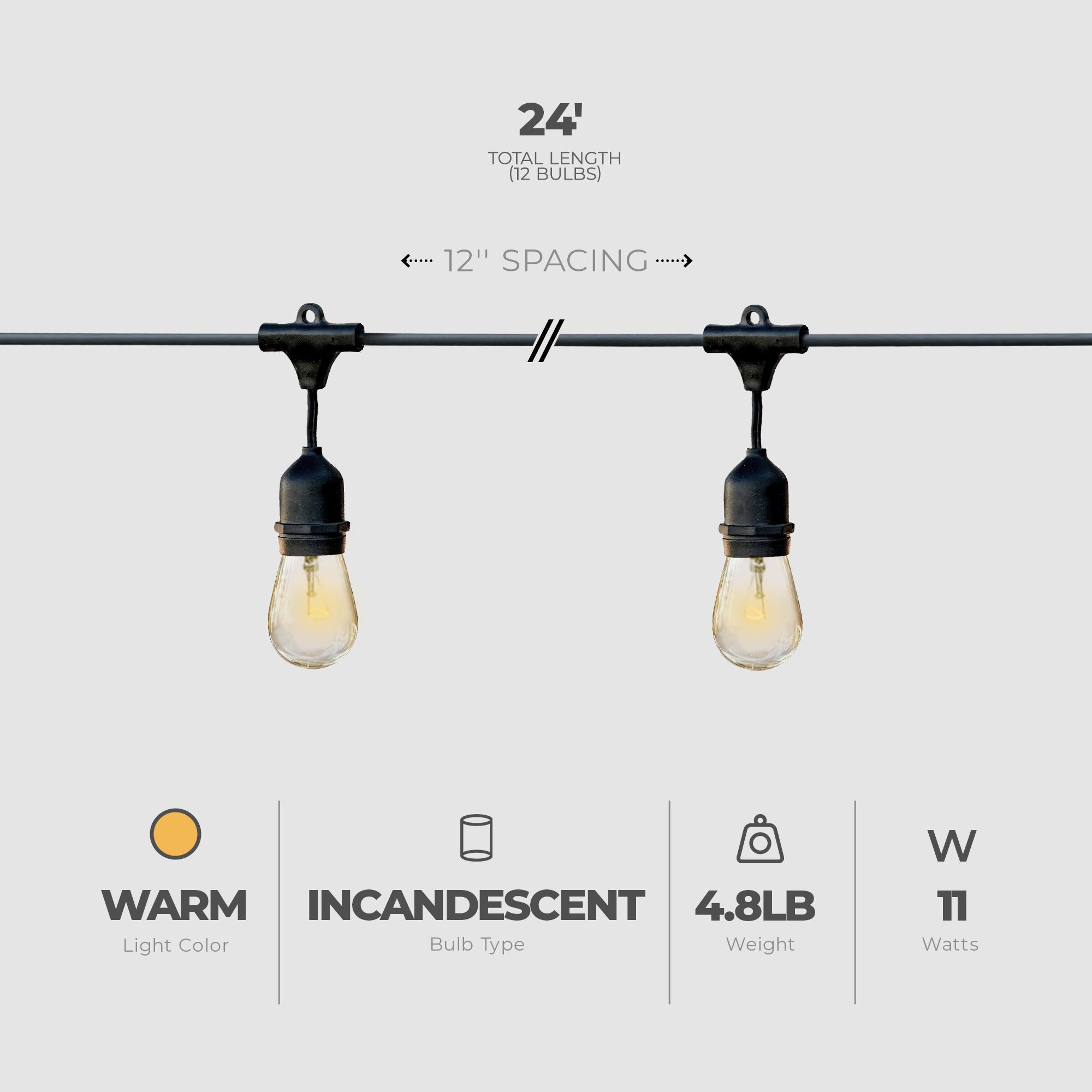 - From the esteemed Dublin collection, this set spans 24 feet, adorned with 12 captivating lights, each emitting an 11-watt, S14 incandescent glow