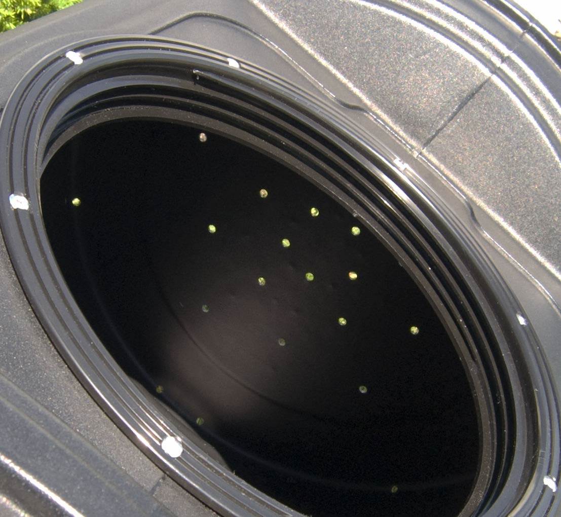 This tumbling composter boasts a 7-cubic foot total capacity. It arrives assembled for easy and instant setting-up. Just find a sunny spot, and this tumbler will do the rest.