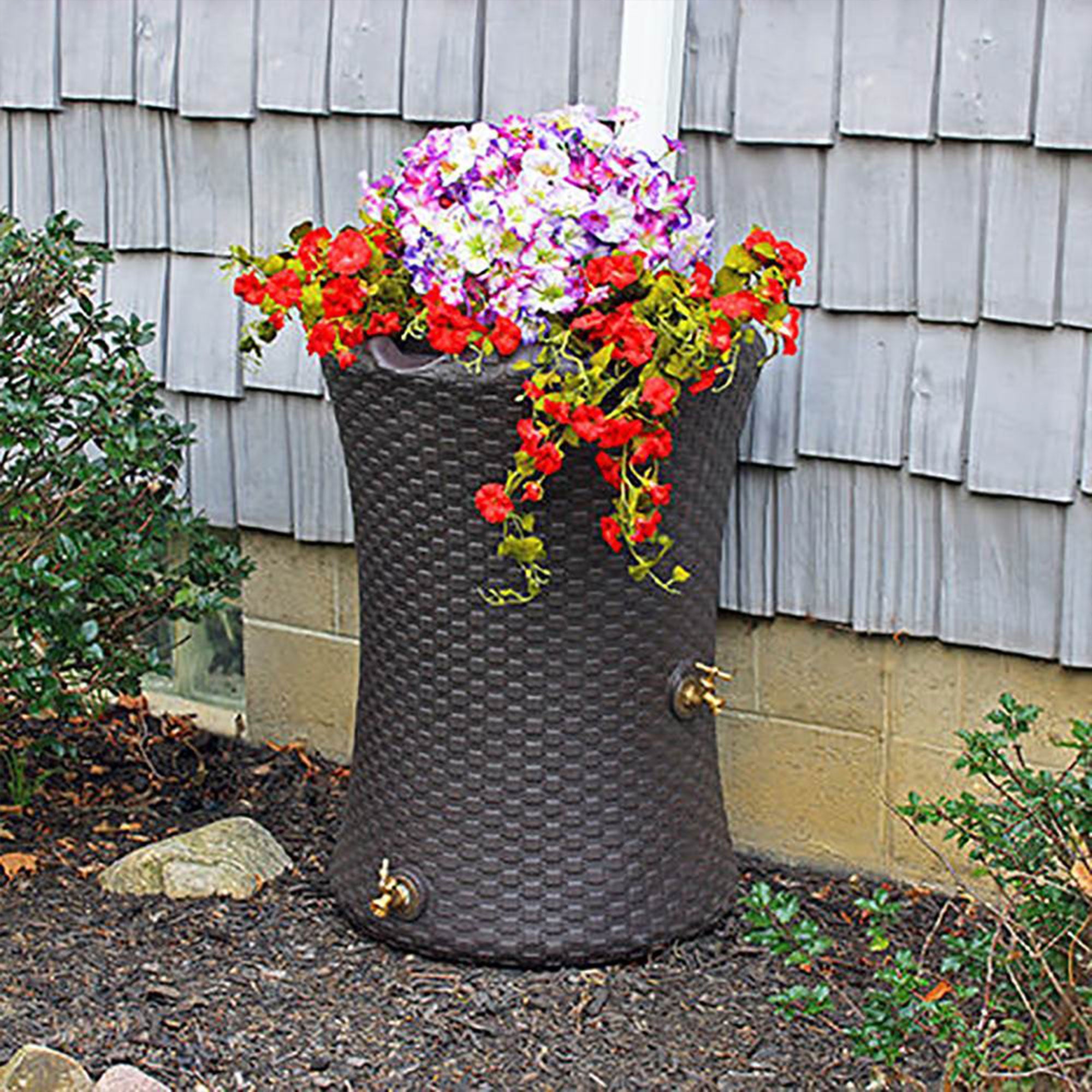 - Catch and store rainwater while growing plants in this rain barrel planter