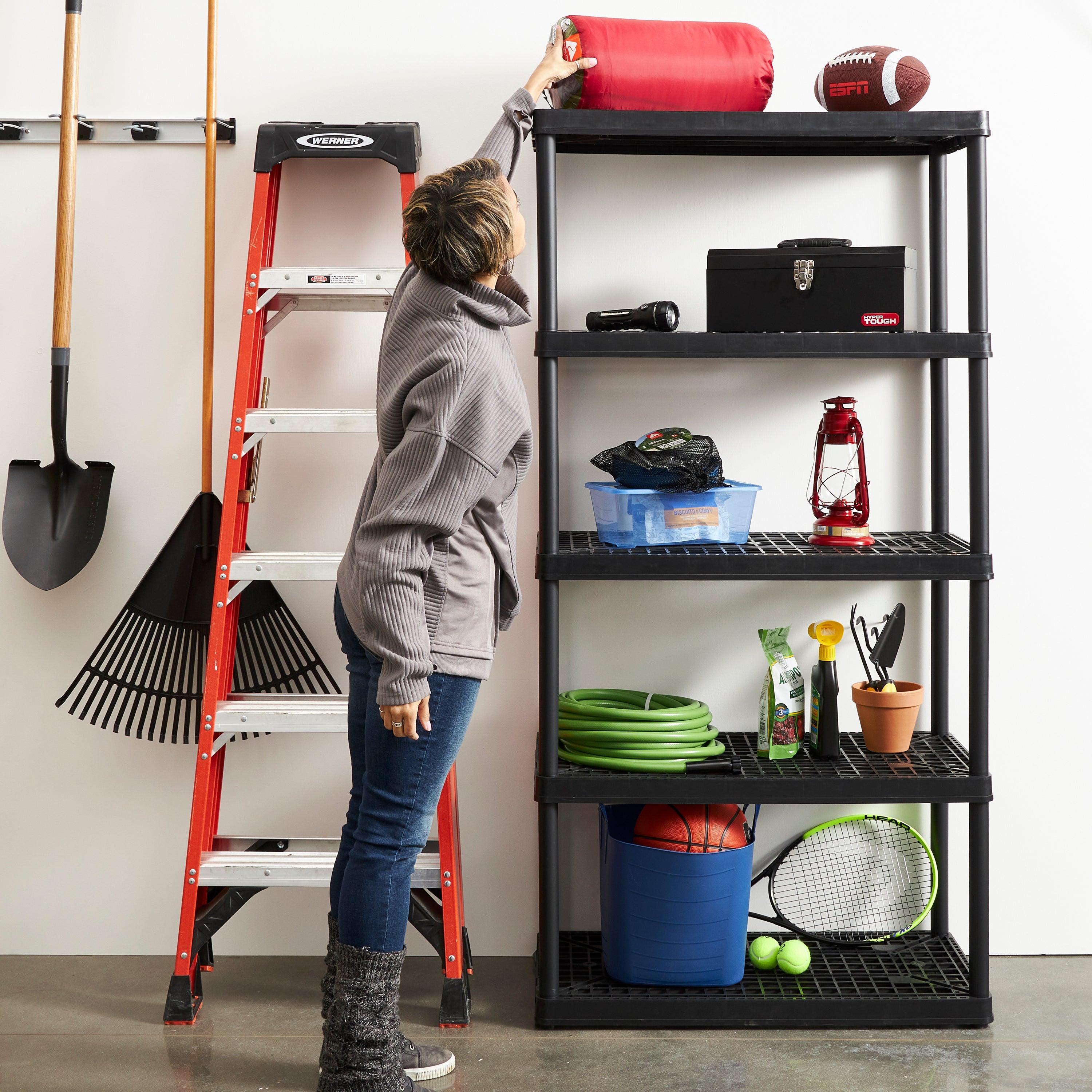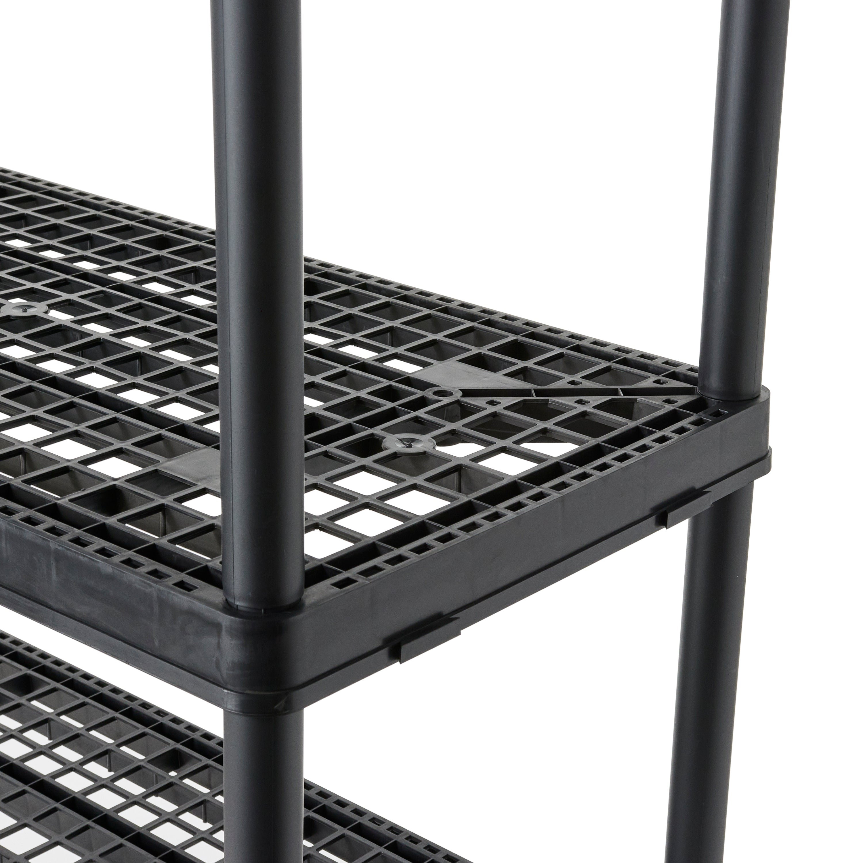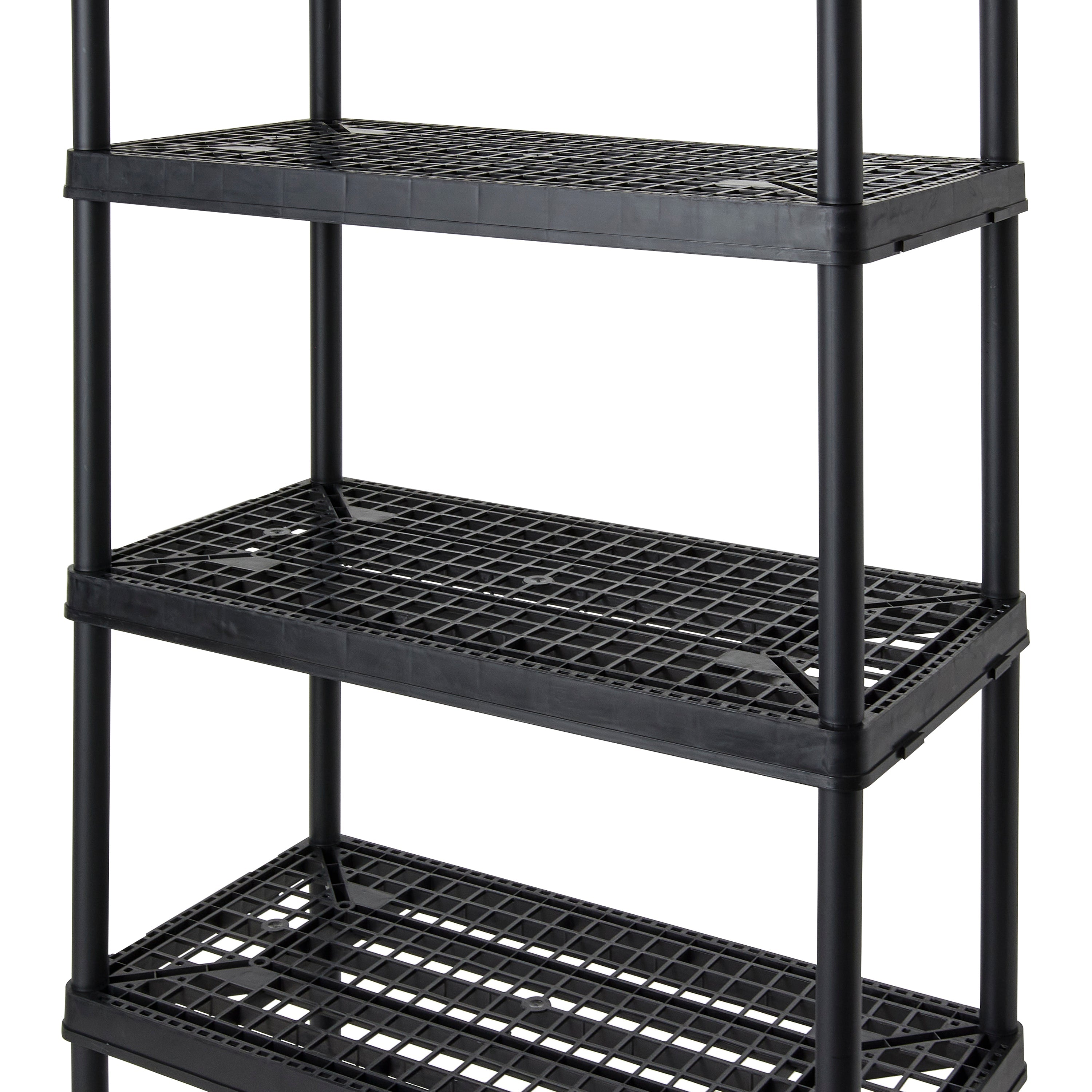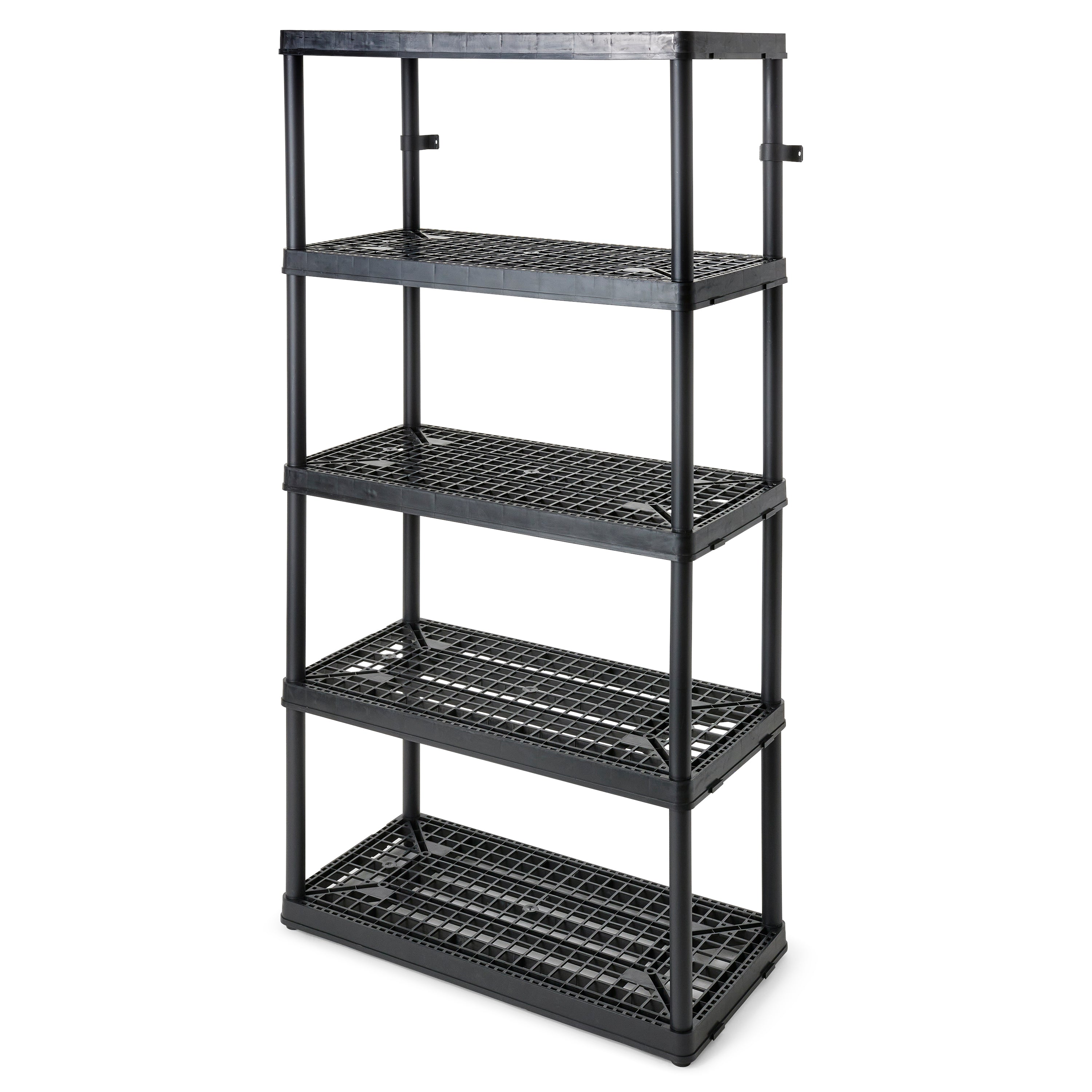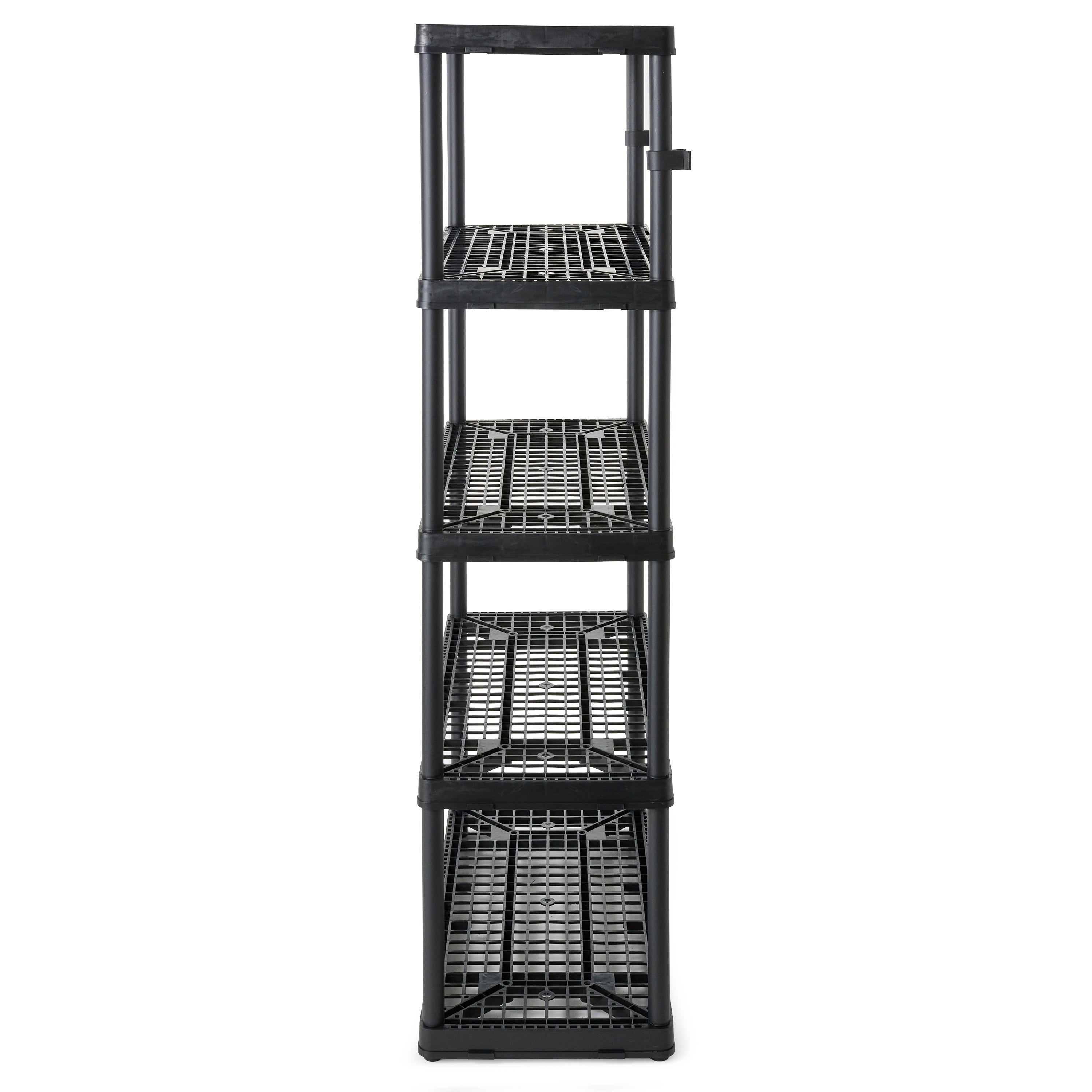 This 5-tier storage shelf features durable resin material that will never rust, dent, or peel, making it perfect for both indoor or garage use. With its simple, no-tool setup, lightweight body, and black coloring you can easily make this storage unit work in any room of the house.