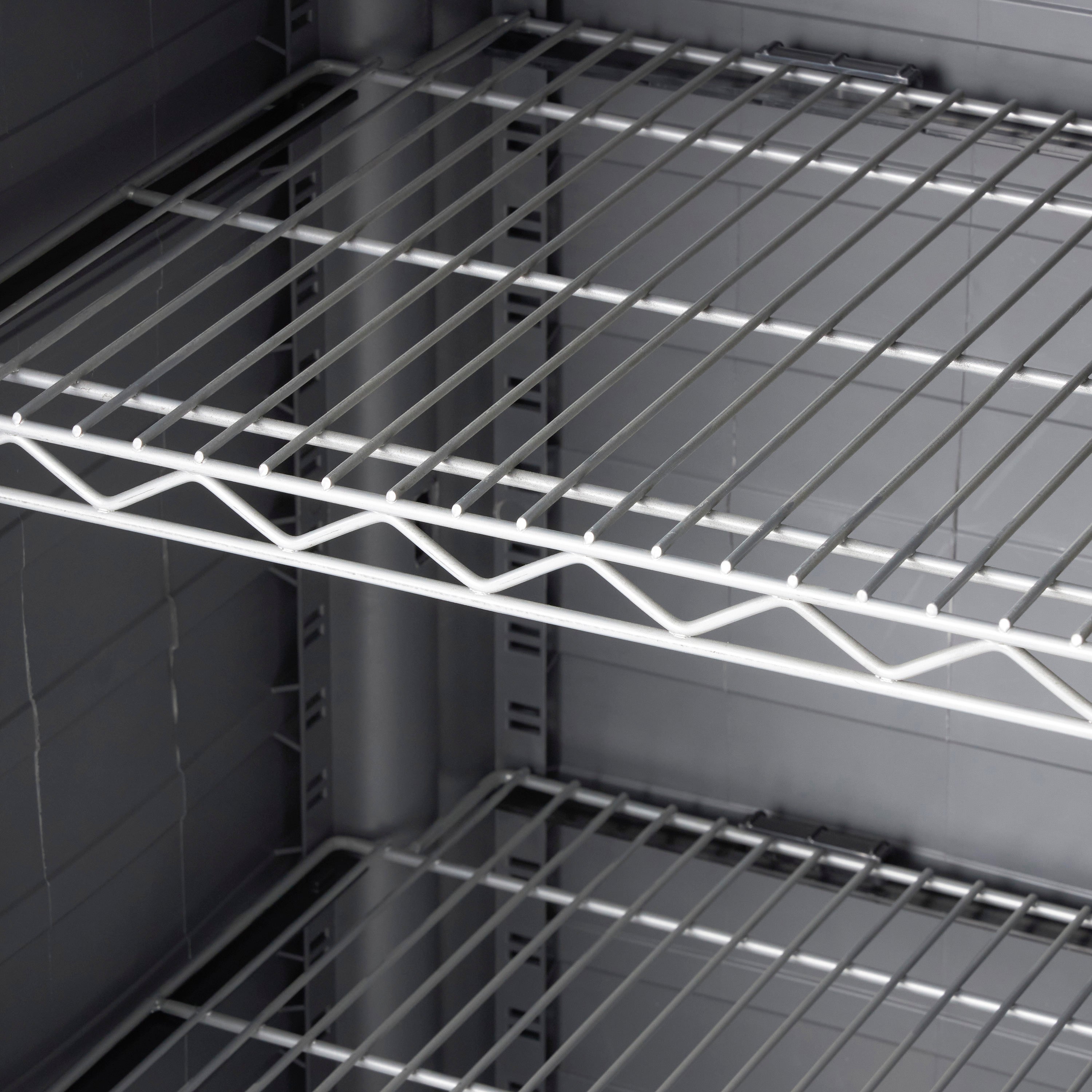 - Features 2 fully adjustable metal shelves that are less likely to warp
