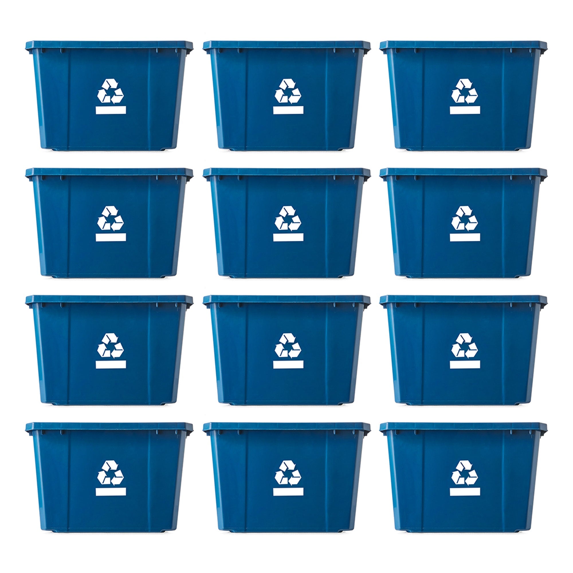 - Pack of 12 medium, bold blue recycling bins help you collect recyclables with its ample 17-gallon capacity