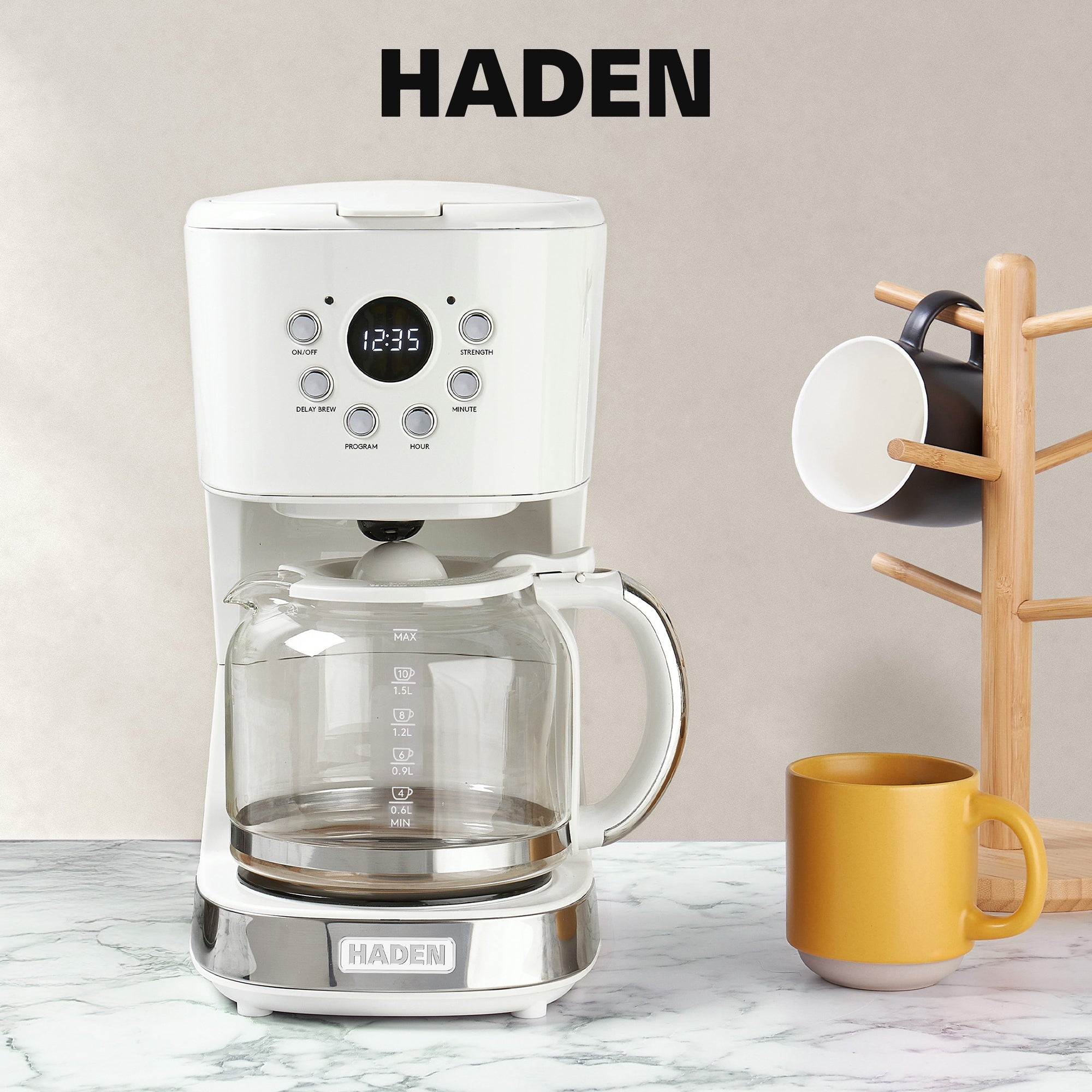 - Elevate your kitchen with this HADEN coffee maker, where classic style meets contemporary living