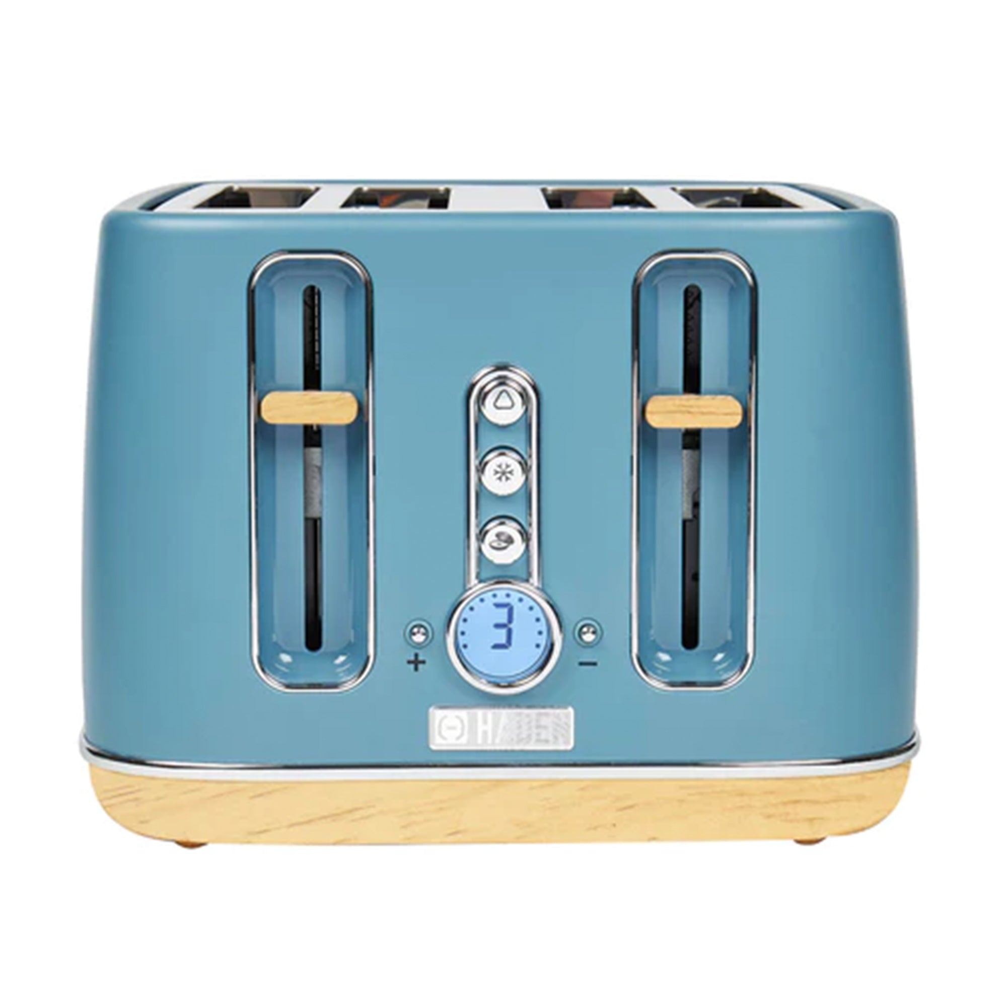 Haden Dorchester 4 Slice Wide Slot Retro Toaster with Control Knob, Stone Blue