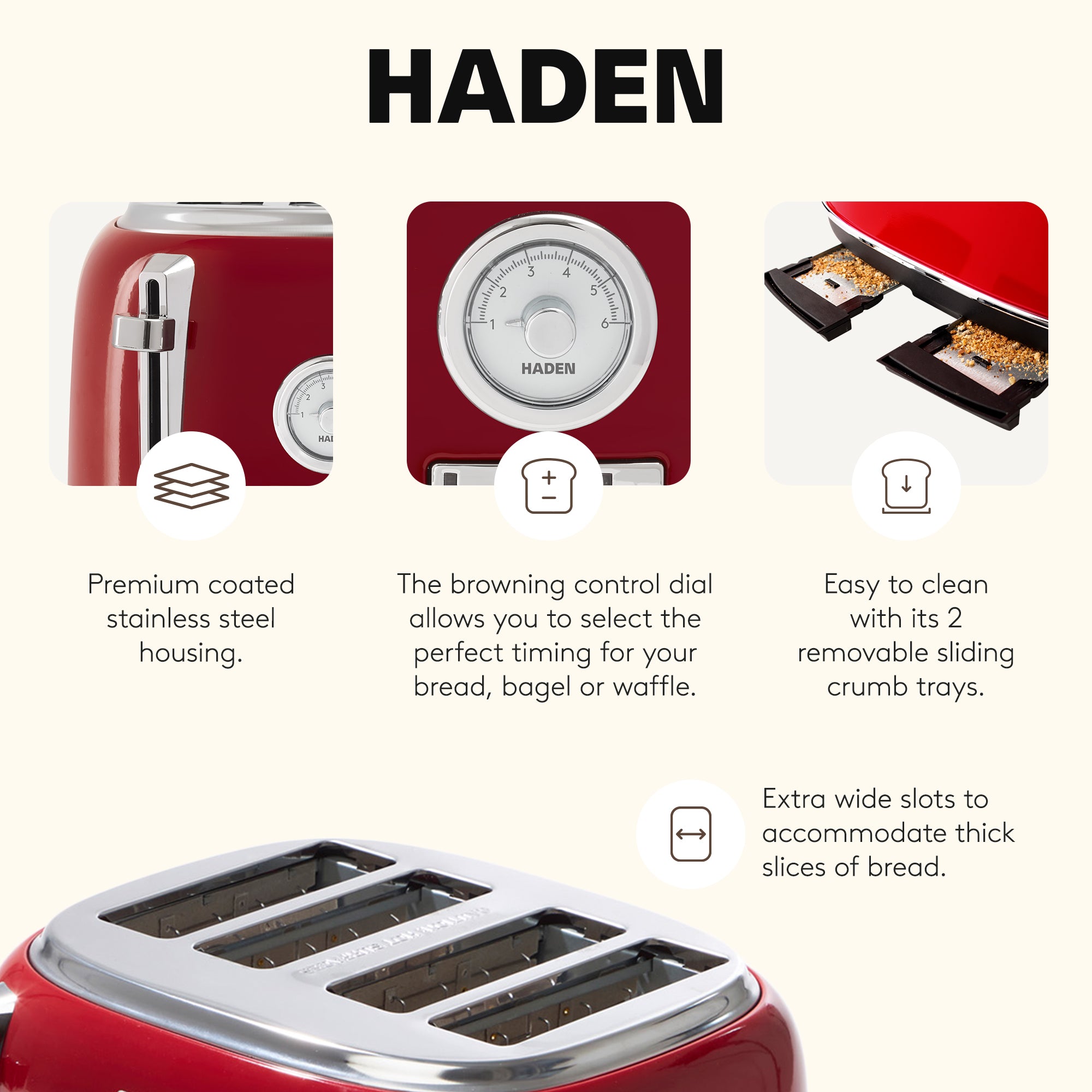 Haden Dorset 4 Slice Wide Slot Stainless Steel Toaster, Rectory Red