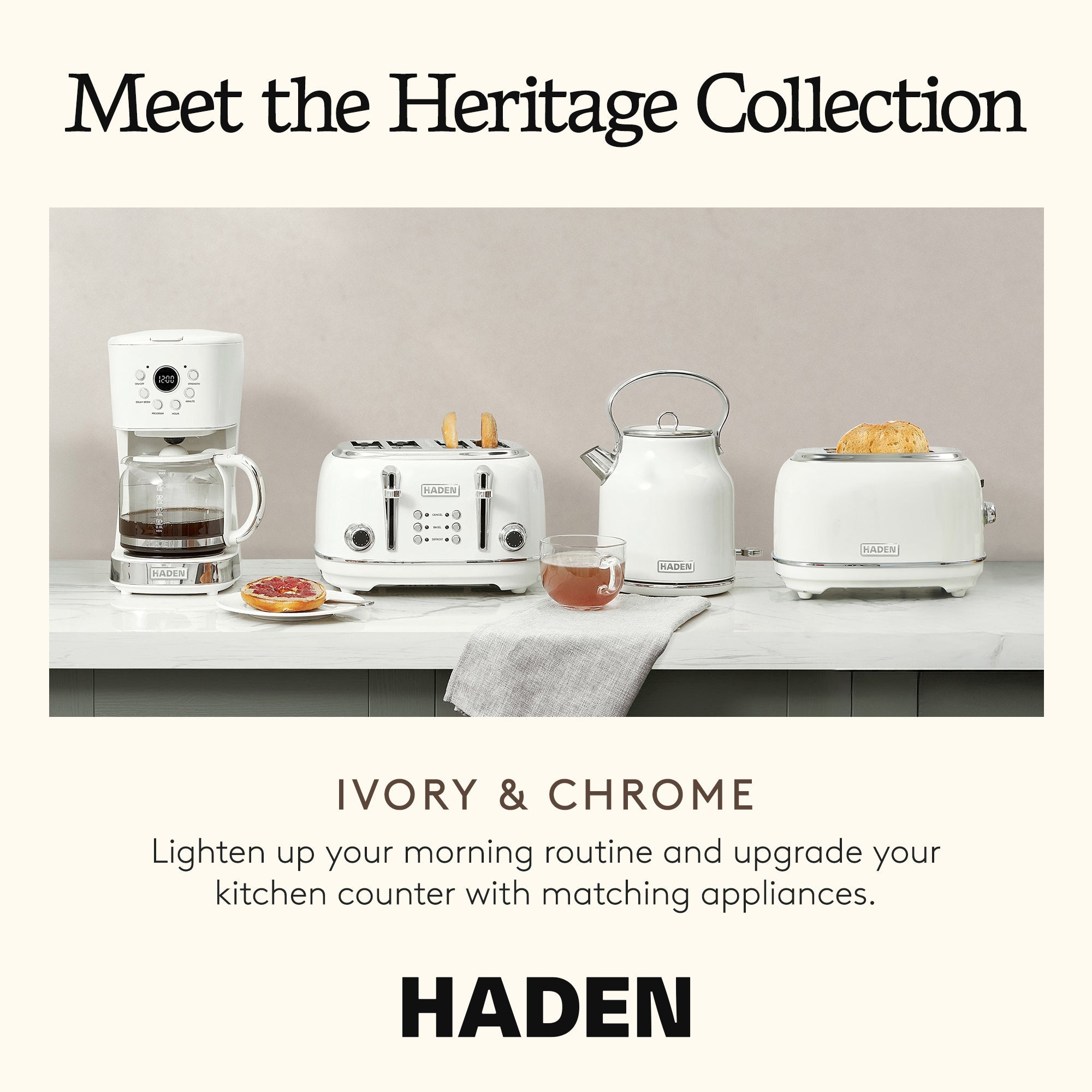Kitchen appliances are all about convenience and versatility, and you'll get just that with the Haden Heritage 1.7 Liter Stainless Steel Electric Kettle and Wide-Slot Toaster.