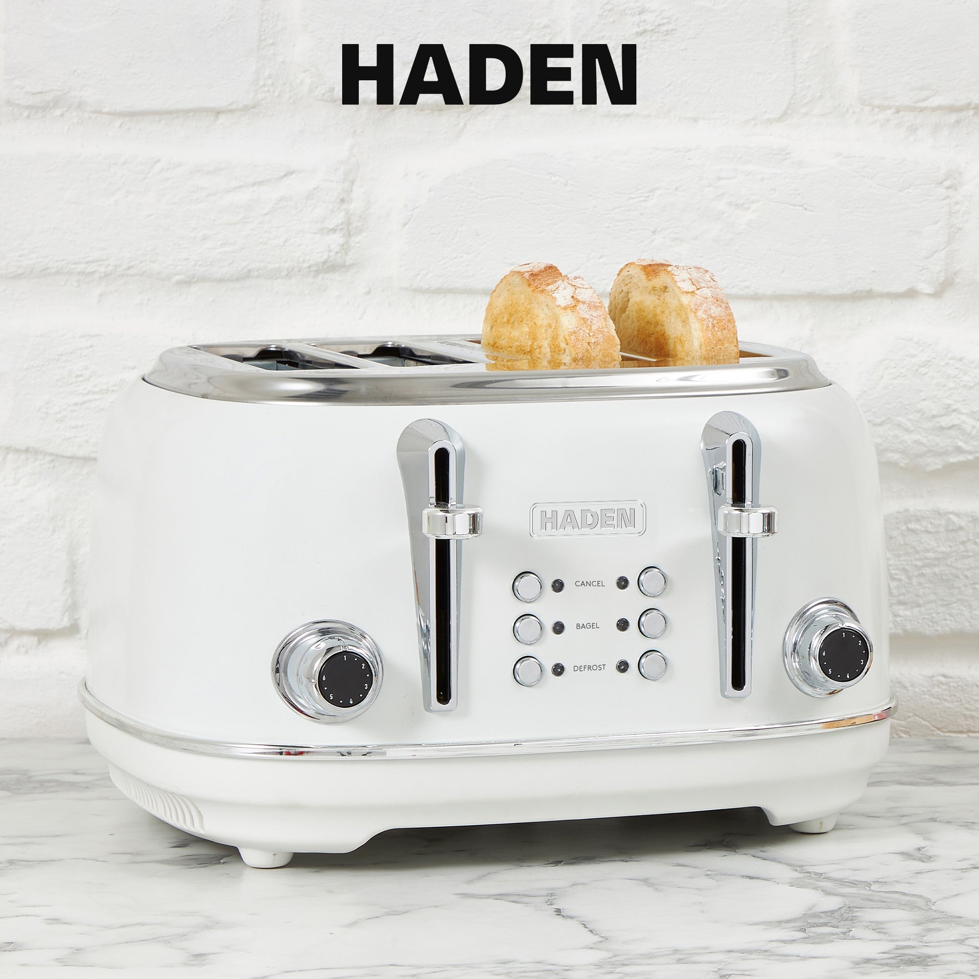 Haden Heritage 1.7 Liter Electric Tea Kettle & 4 Slice Wide Slot Toaster, White