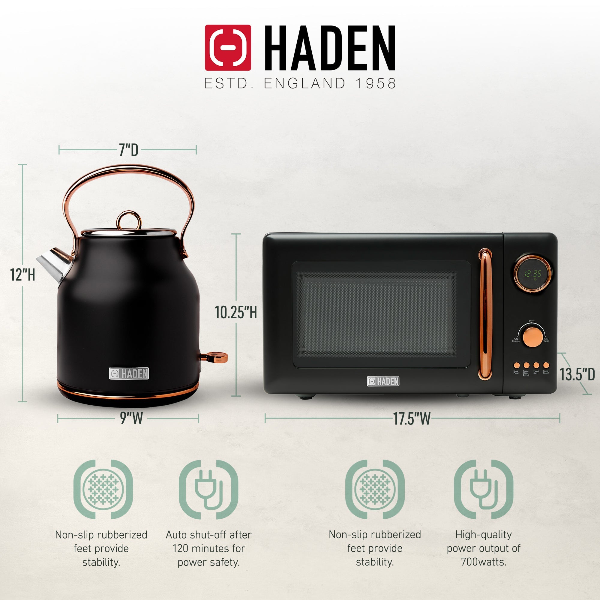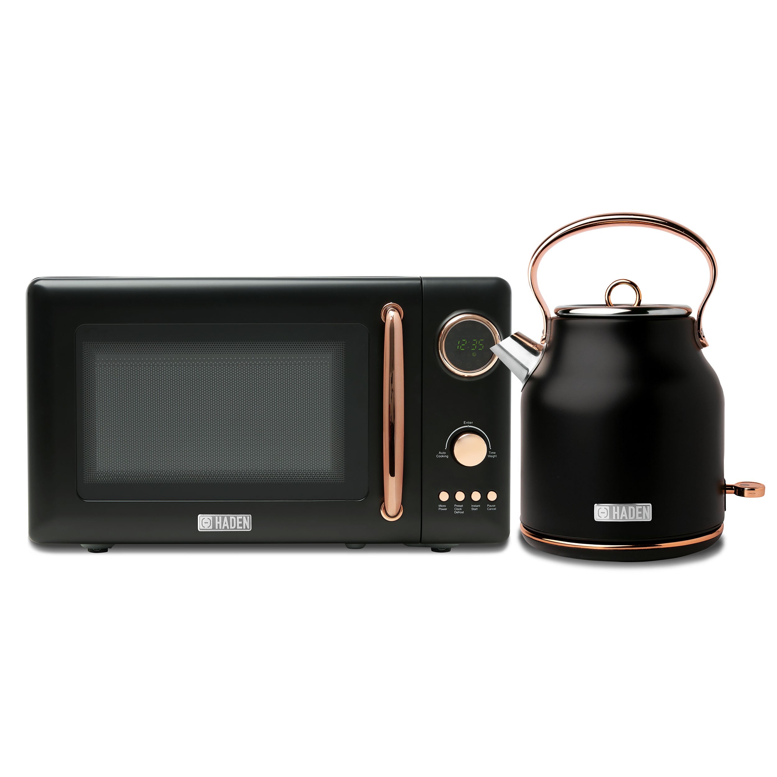 Haden Heritage 1.7L Electric Water Kettle & Compact Microwave, Black & Copper