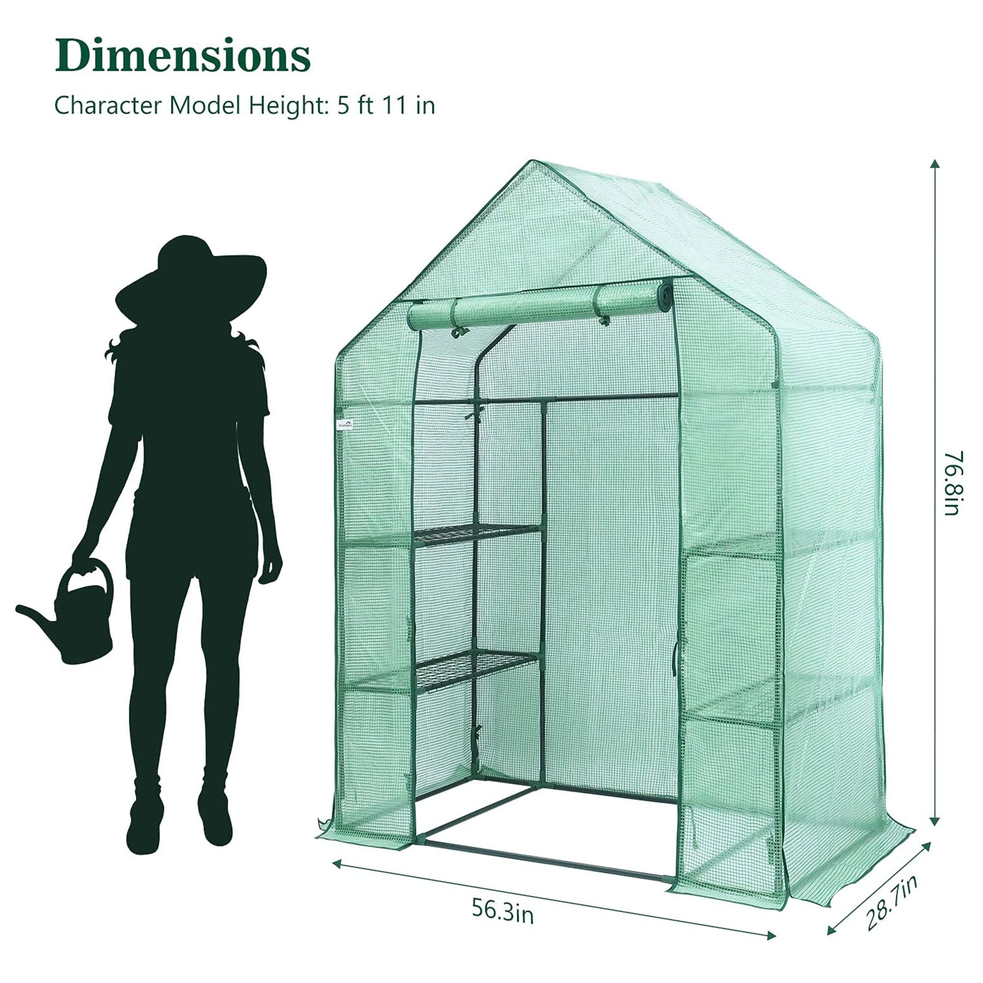 Hanience Walk-In Greenhouse, 3 Tiers, 4 Wired Shelves with PE Cover and Roll-Up Zippered Doors, Green House for Indoors and Outdoors, Green