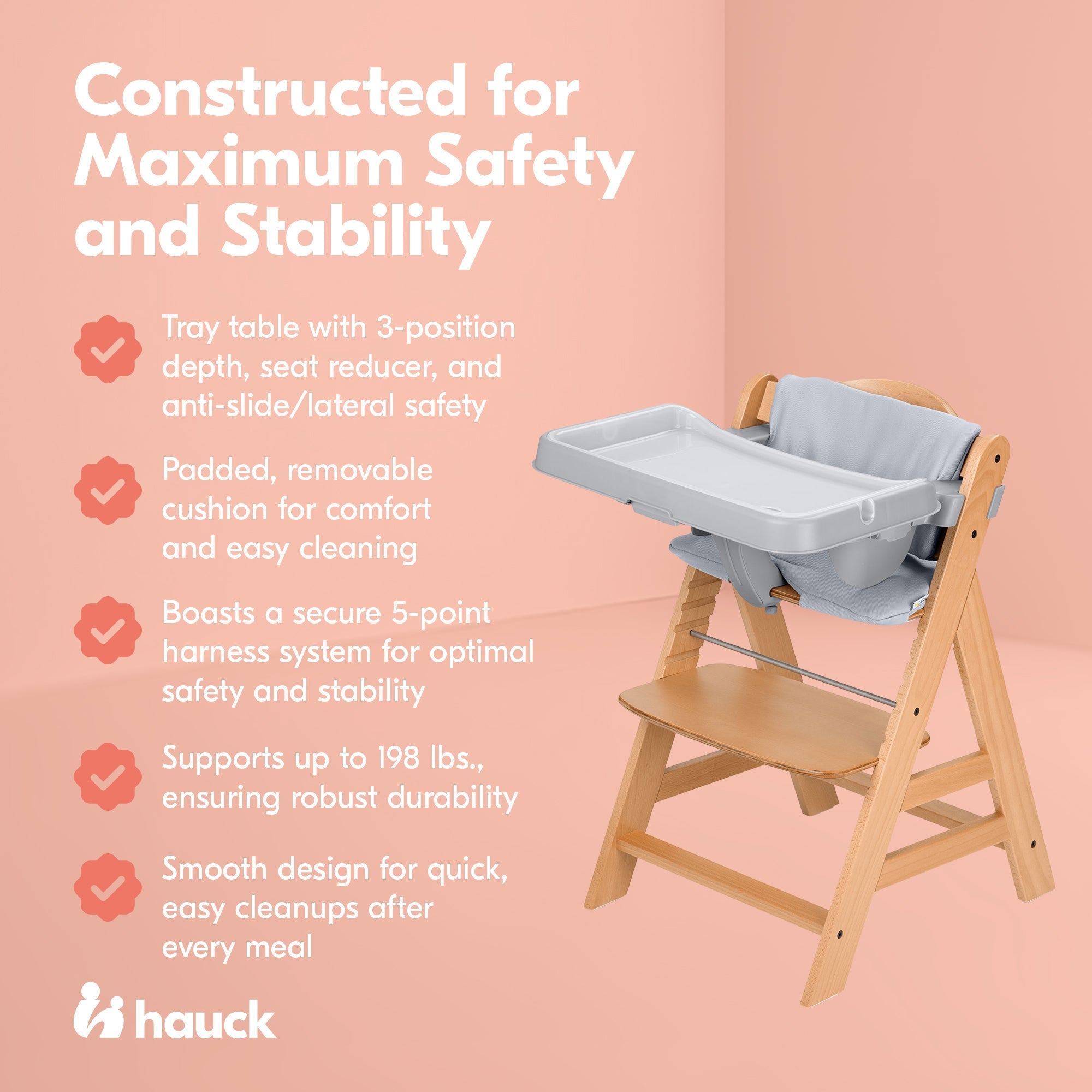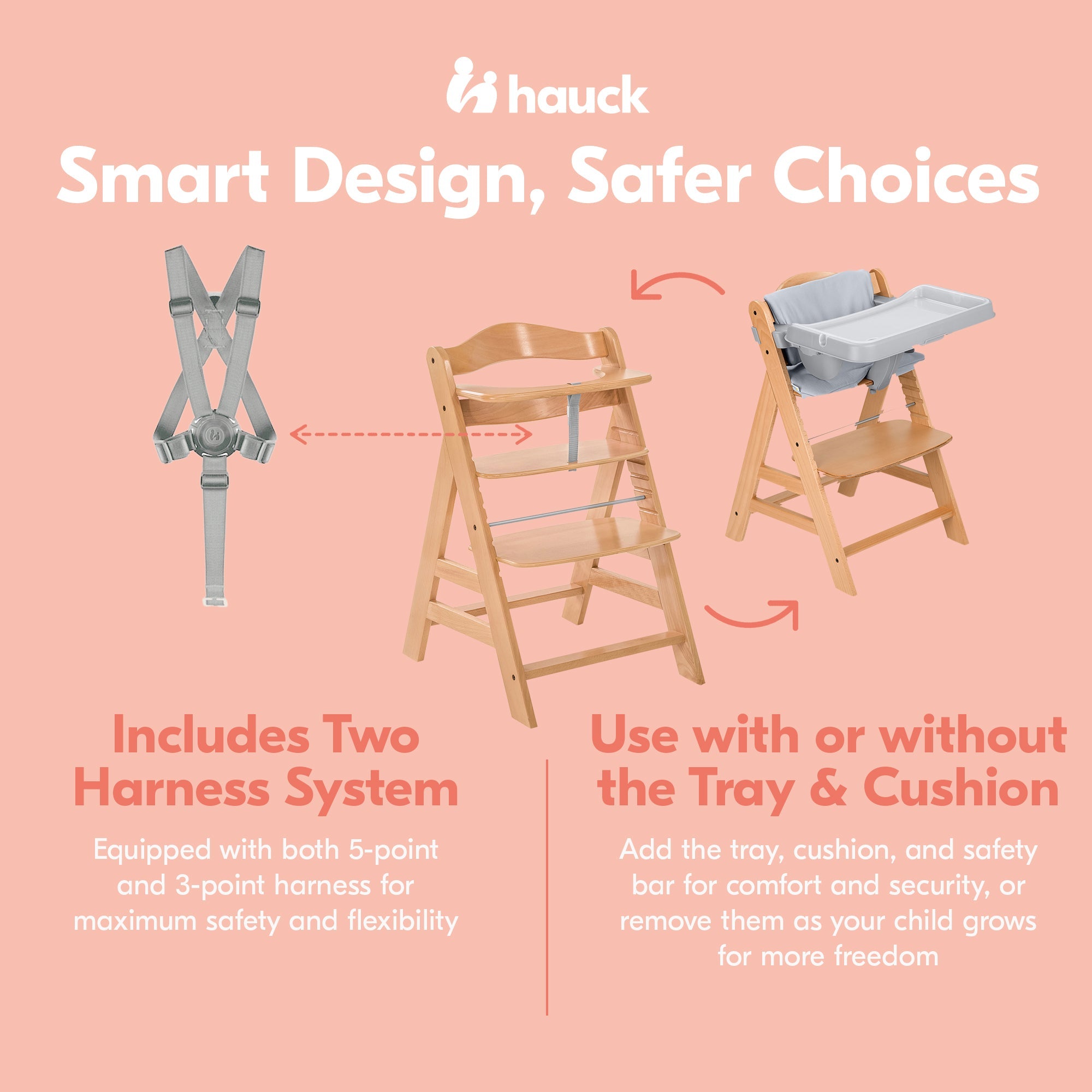 hauck Alpha+ Grow Along Wooden High Chair w/Grey Tray Table & Deluxe Cushion