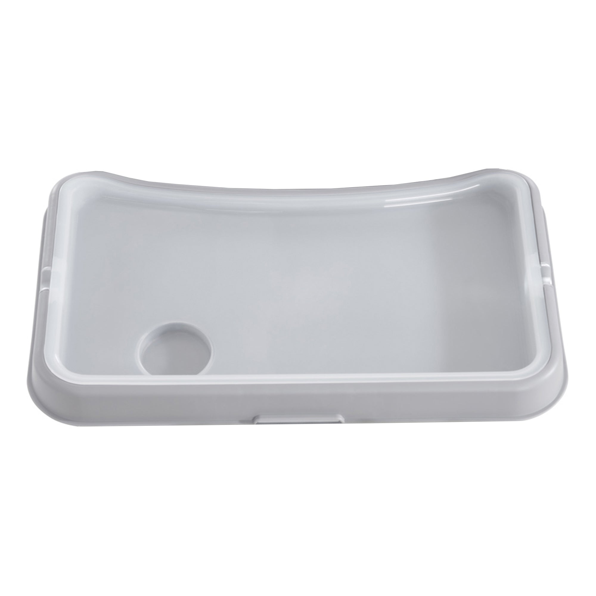 - Tray table offers 3 positions and has an elevated edge with a cup hole