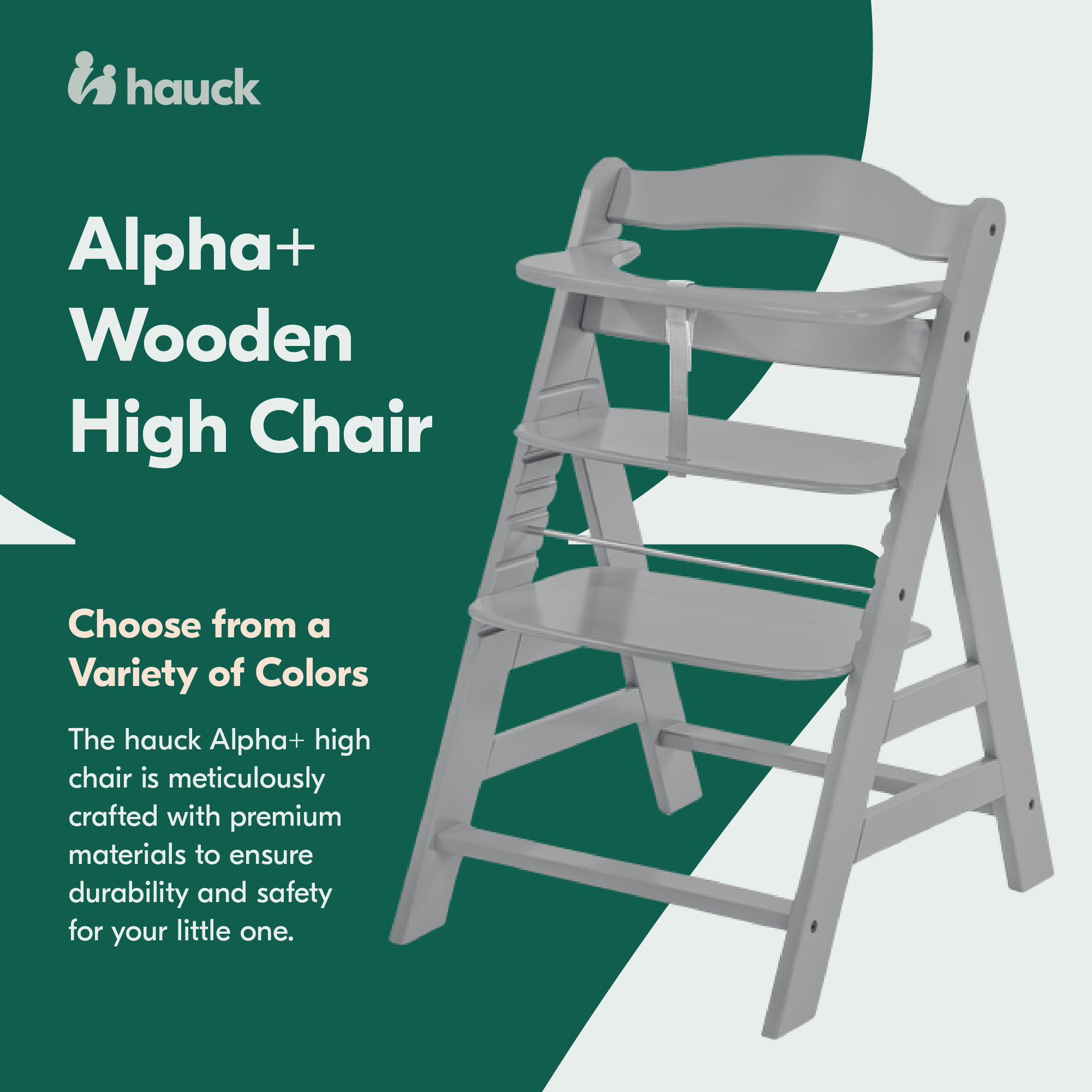 hauck Alpha+ Wooden High Chair with Tray and Safety Bar, Grey
