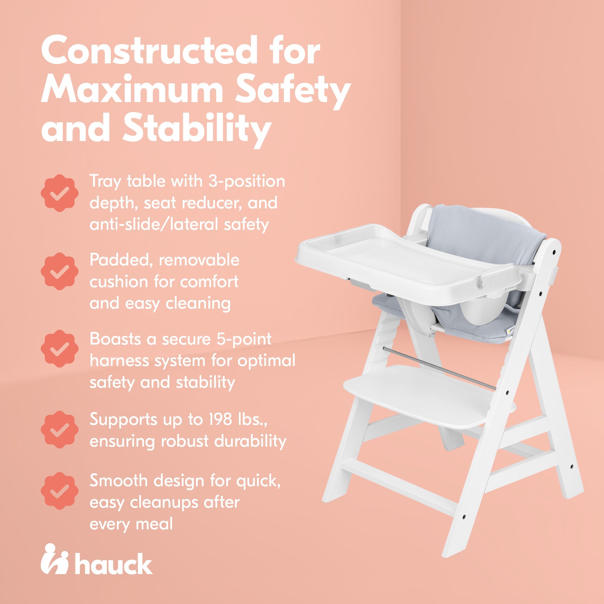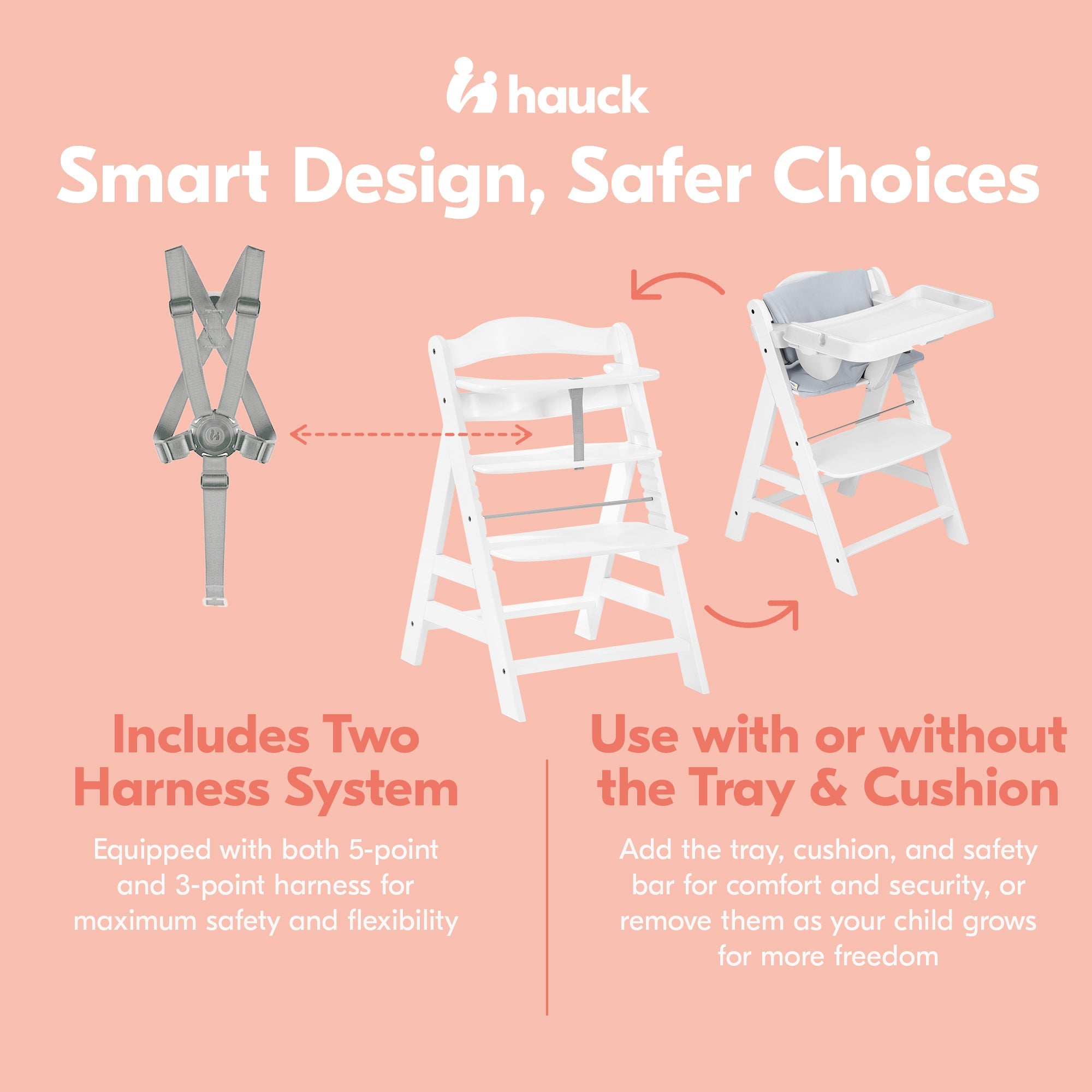 With the hauck AlphaPlus Grow Along Highchair, Tray, and Cushion, you have everything you need to keep your little one comfortable and their meal easily accessible.