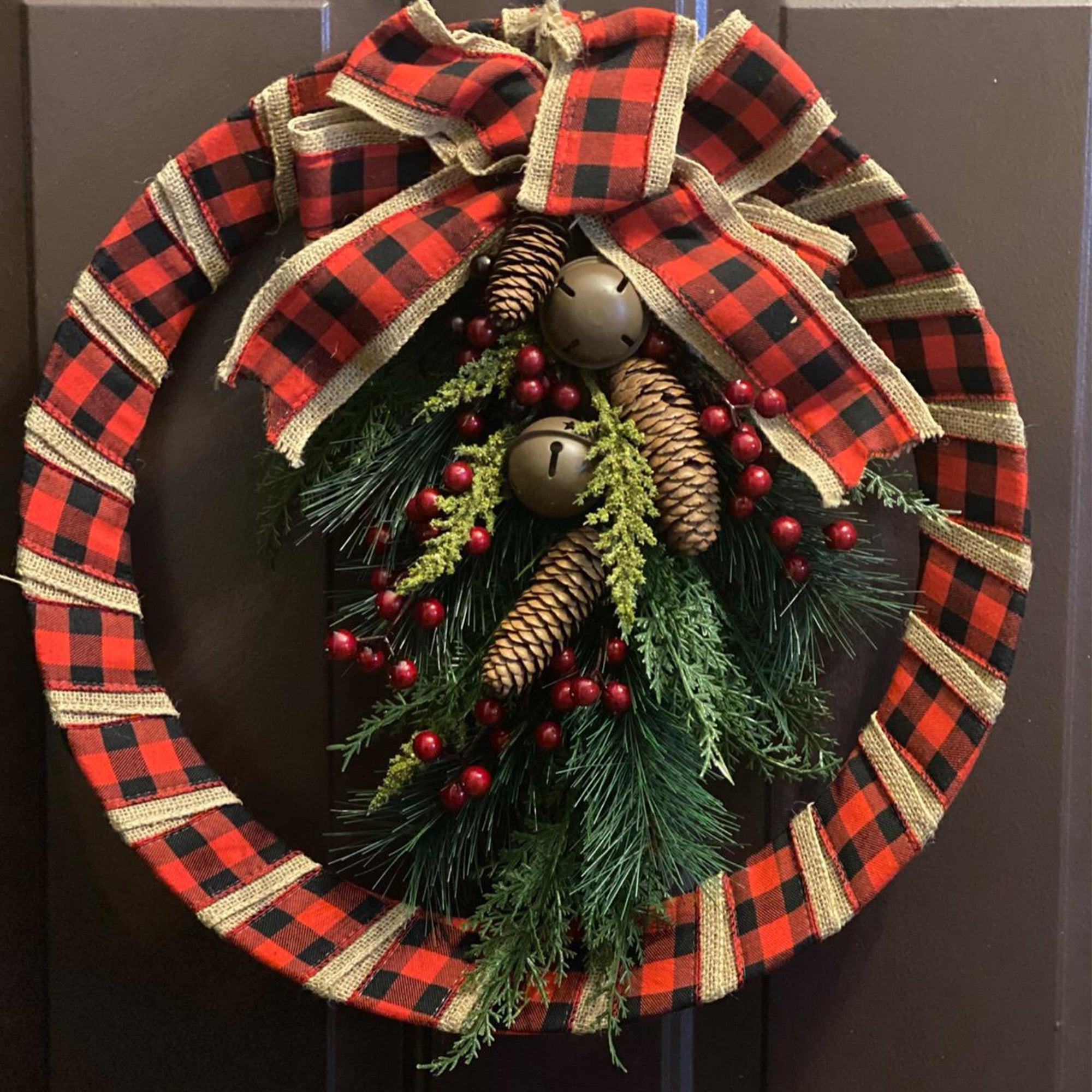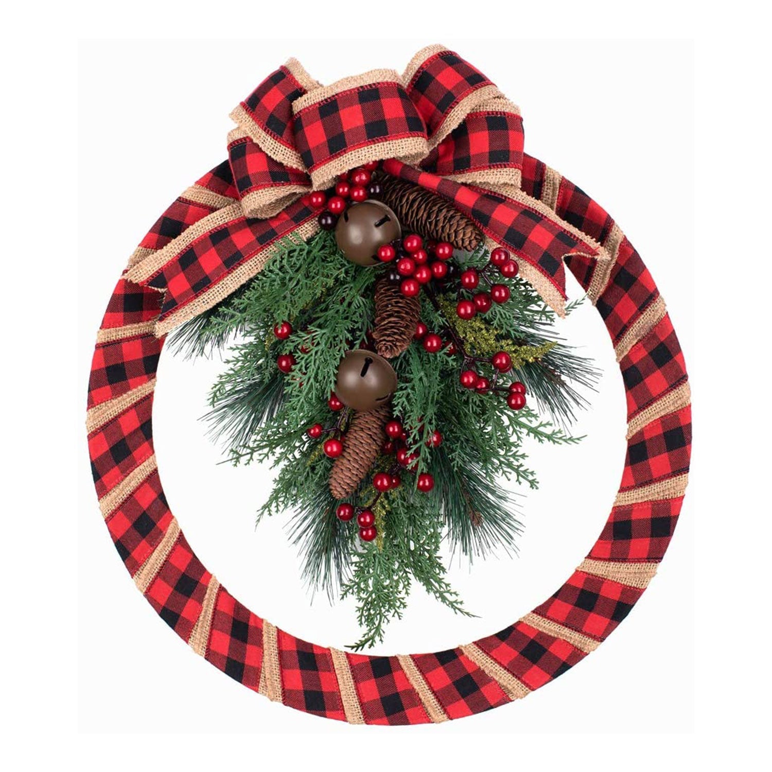 Haute Decor 18" Round Indoor/Outdoor Christmas Wreath w/Pinecones, Buffalo Check