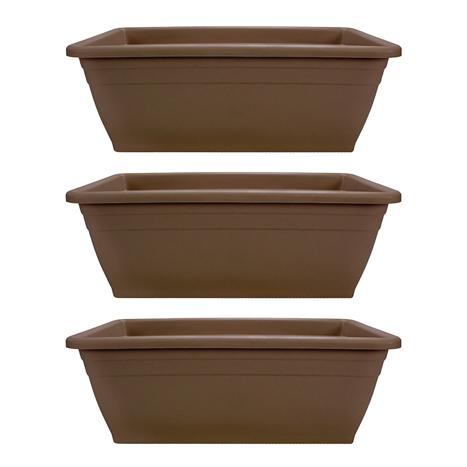 HC Companies 12-Inch Outdoor Plastic Deck Flower Planter Box, Chocolate (3 Pack)