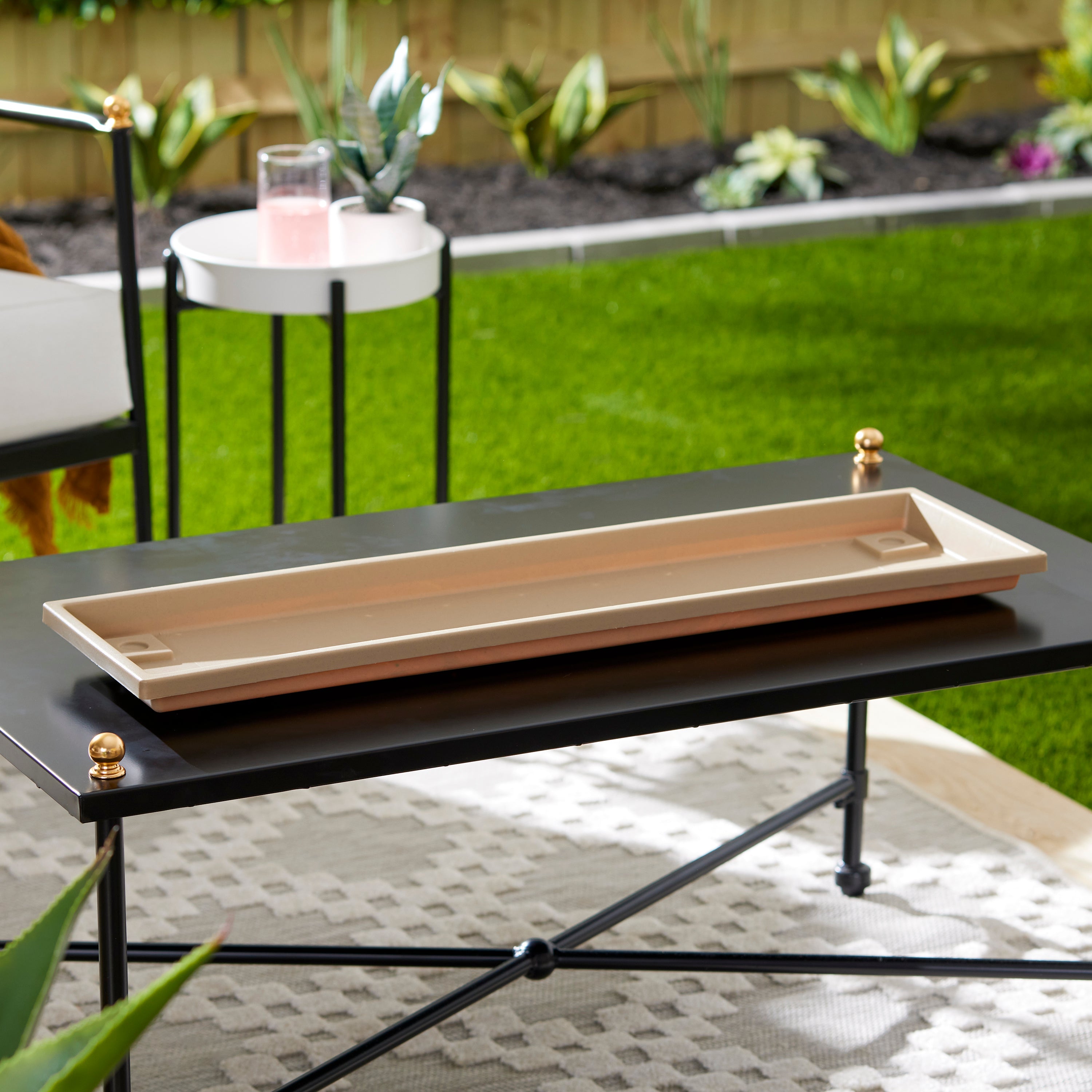 HC Companies Farmhouse Venetian 30 Inch Rectangular Flower Box Saucer, Sandstone