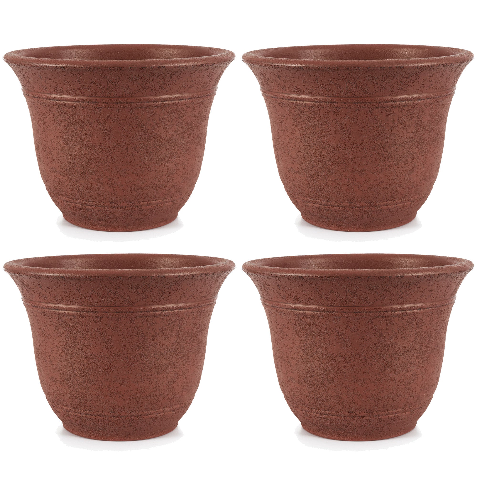 HC Companies Sierra 13 In Round Garden Planter Pot, Rustic Redstone (4 Pack)