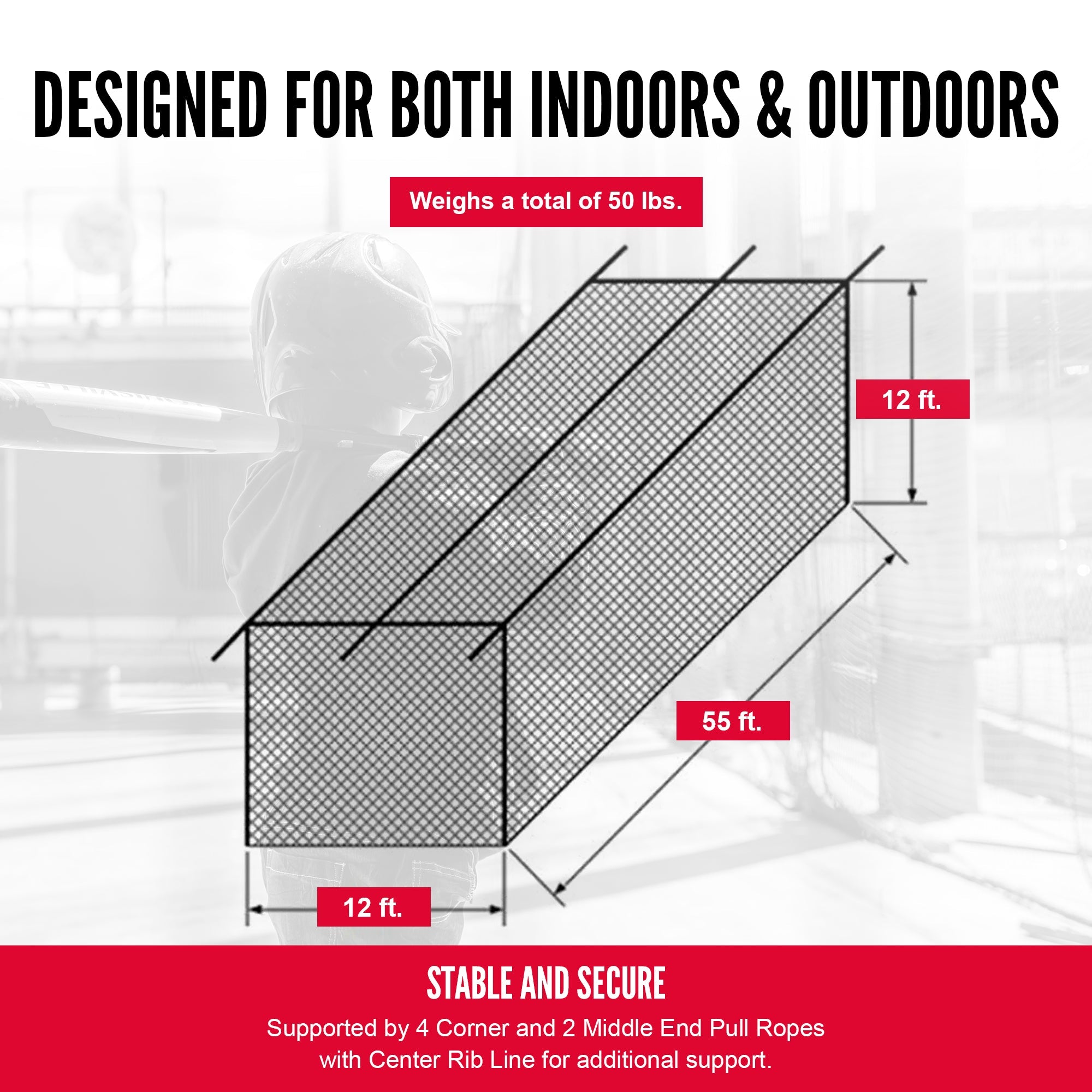 Hit Run Steal 12 x 12 x 55 Feet Premium Batting Cage Net Only, 1.75" Mesh, Black