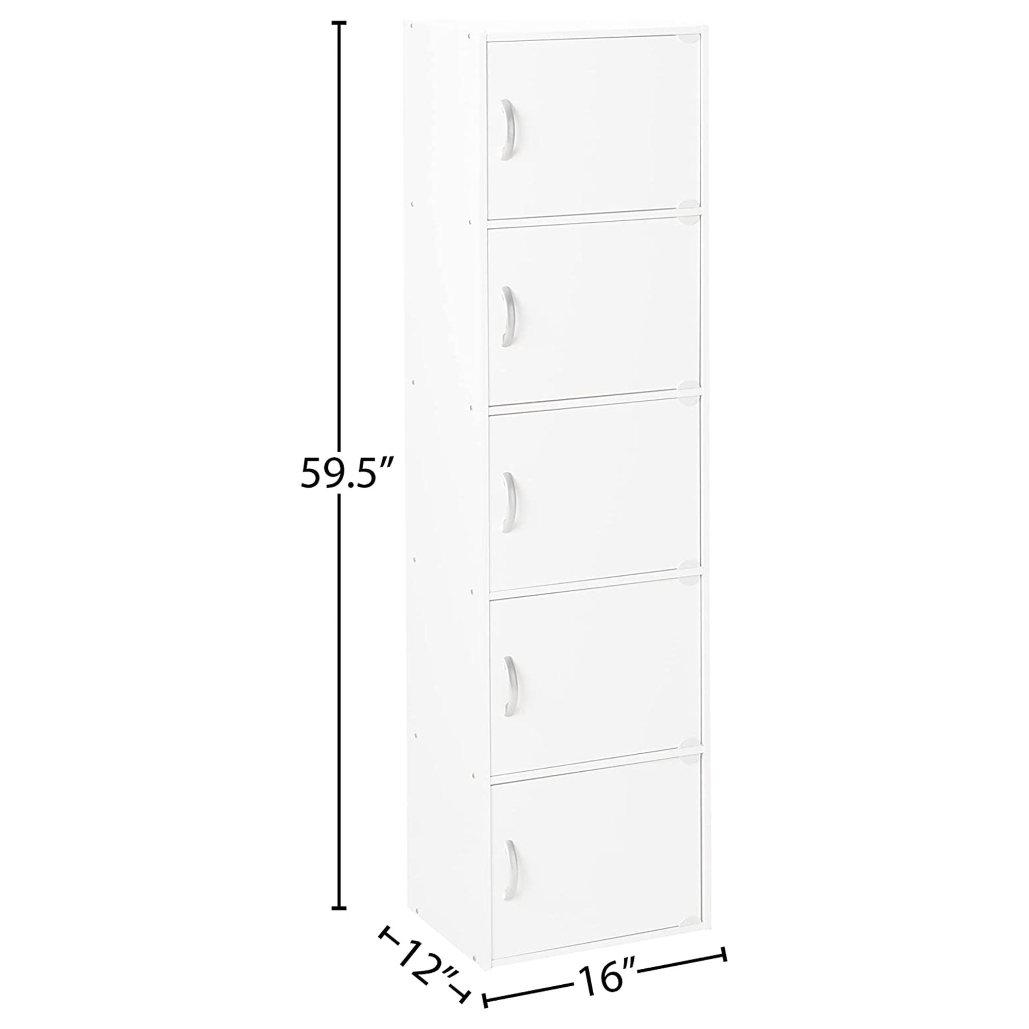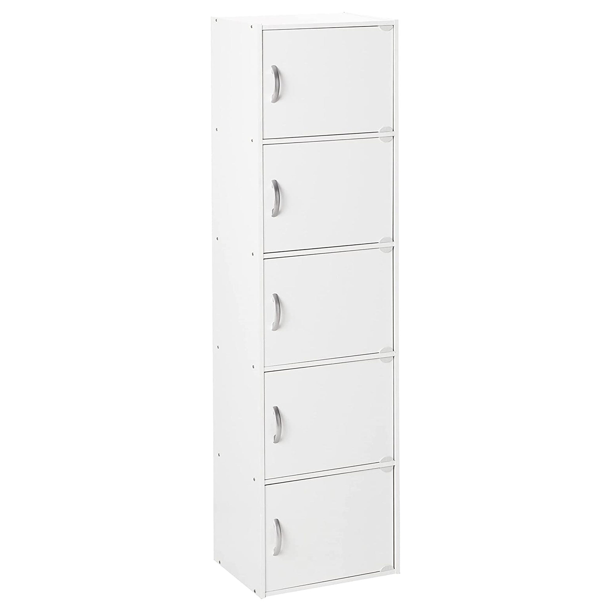 With all the manual hardware tools included, this bookshelf will be easy to assemble within minutes. Enjoy clean and organized spaces by adding the 5-Shelf Enclosed Storage Cabinets from Hodedah to your home and office.