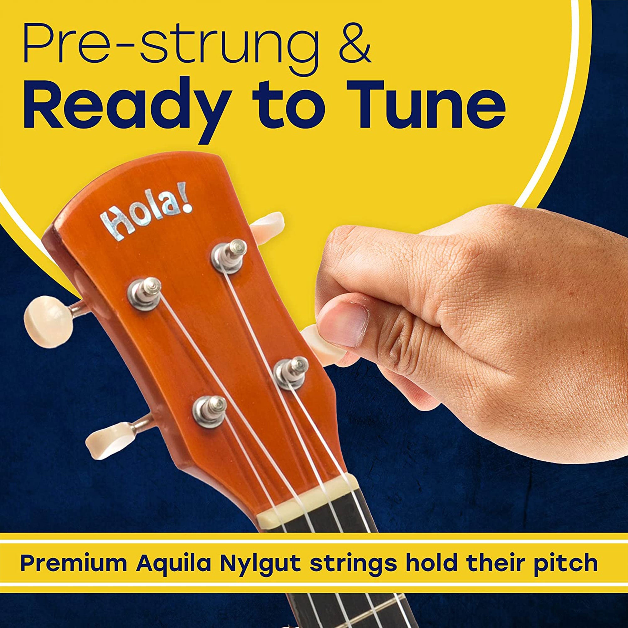 Hola! Music Color Series Soprano Ukulele with Tote Bag, Strap, & Picks, Natural