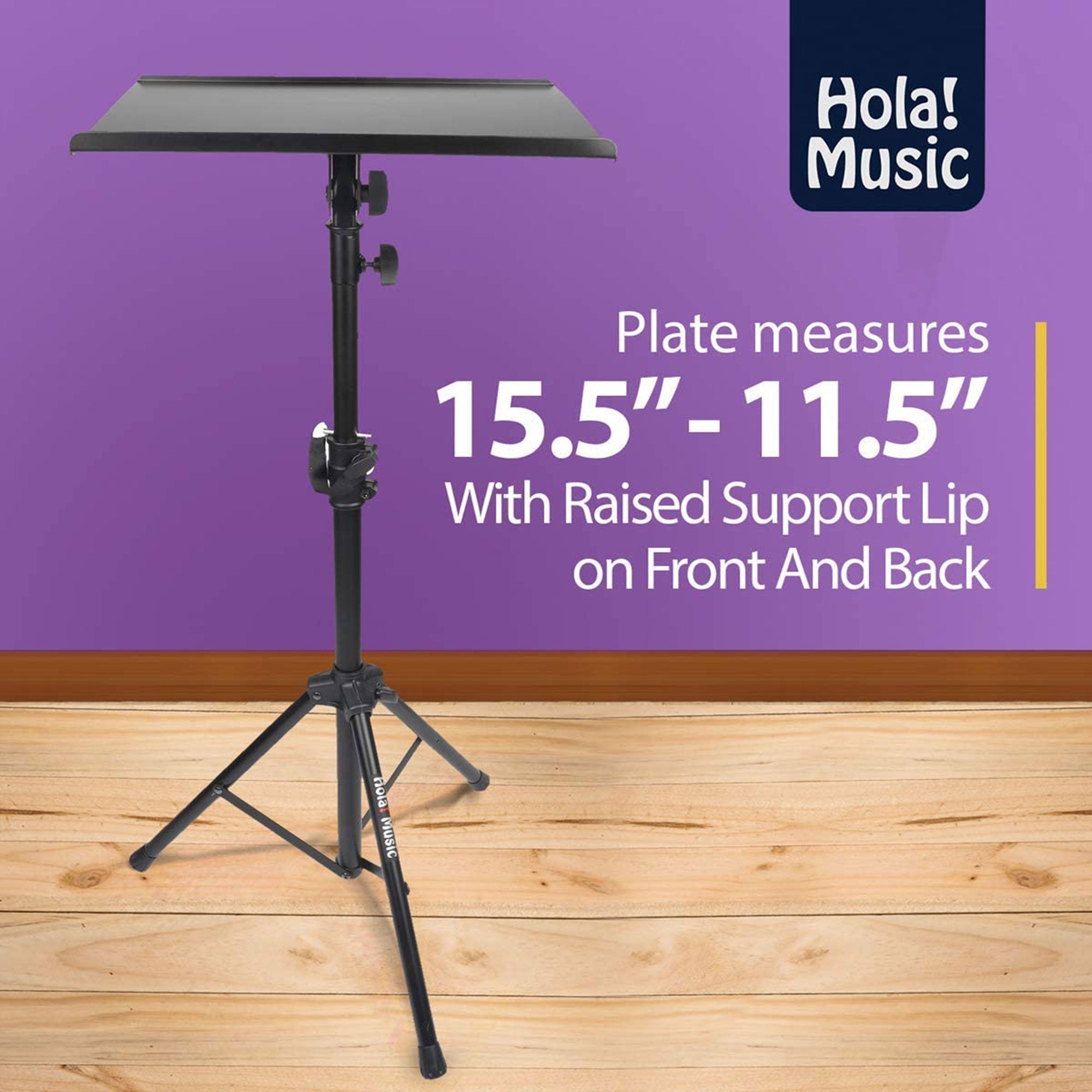 Stacking boxes for a tripod and cluttered work tables are a thing of the past. Ideal for classrooms, music studios, art rooms, and on-stage gigs the Adjustable Height Professional Projector Tripod Stand from Hola! Music will provide you the storage and equipment organization you need.