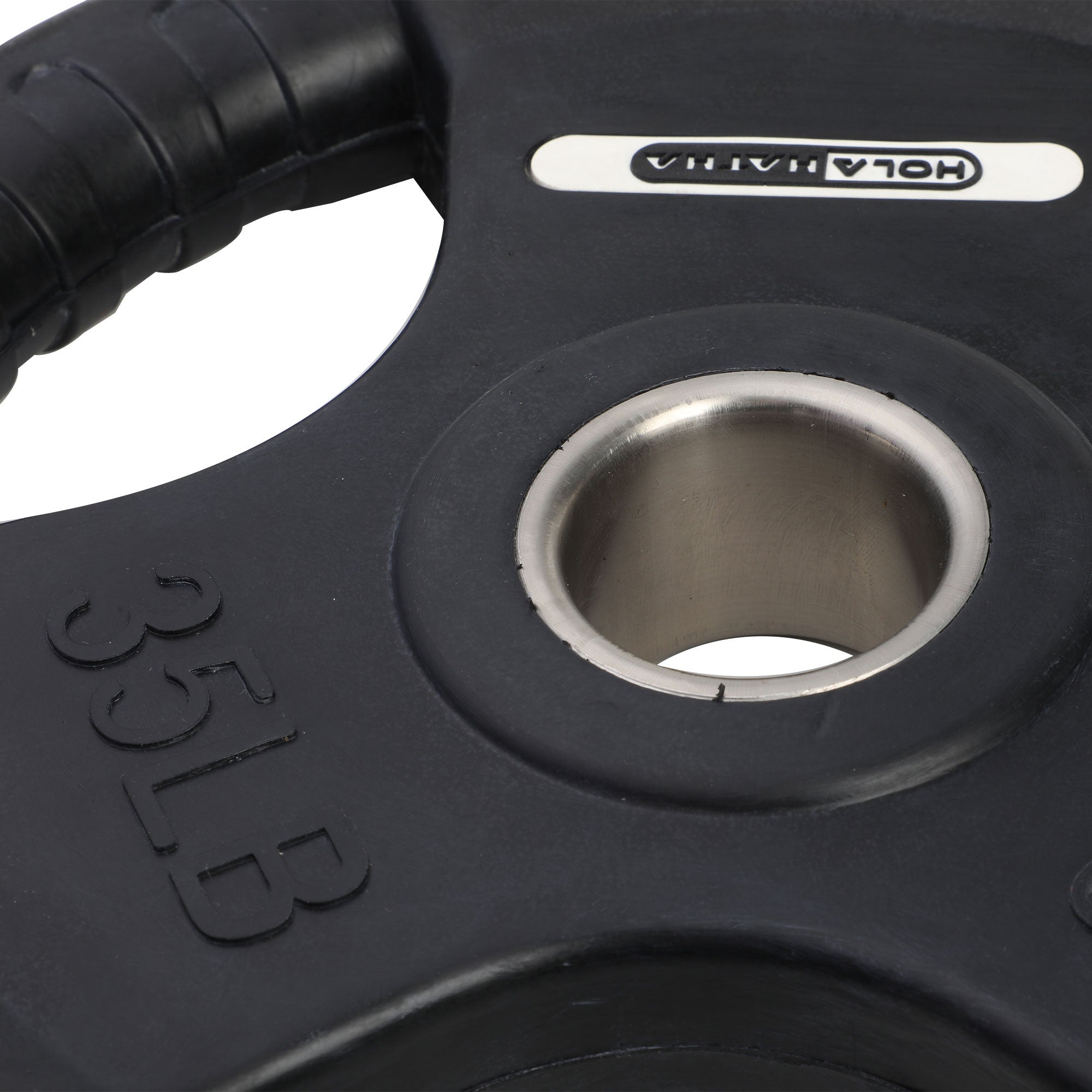 HolaHatha 35 Pound Olympic Rubber Coated Weight Plate w/ Handle, Black (2 Pack)
