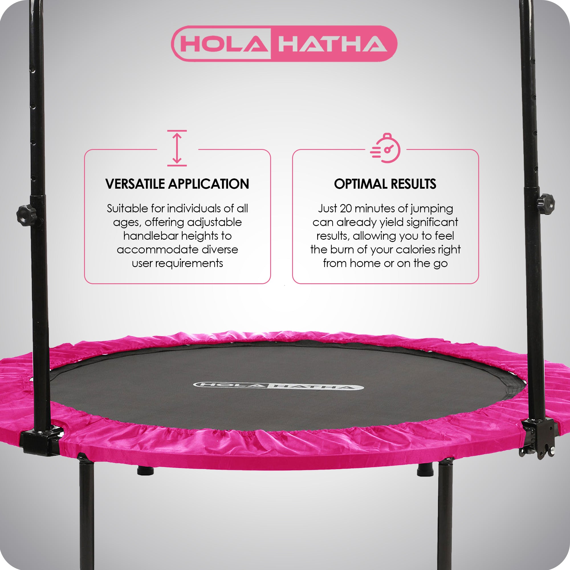 HolaHatha 48 Inch Foldable Mini Fitness Trampoline with Adjustable Handle, Pink
