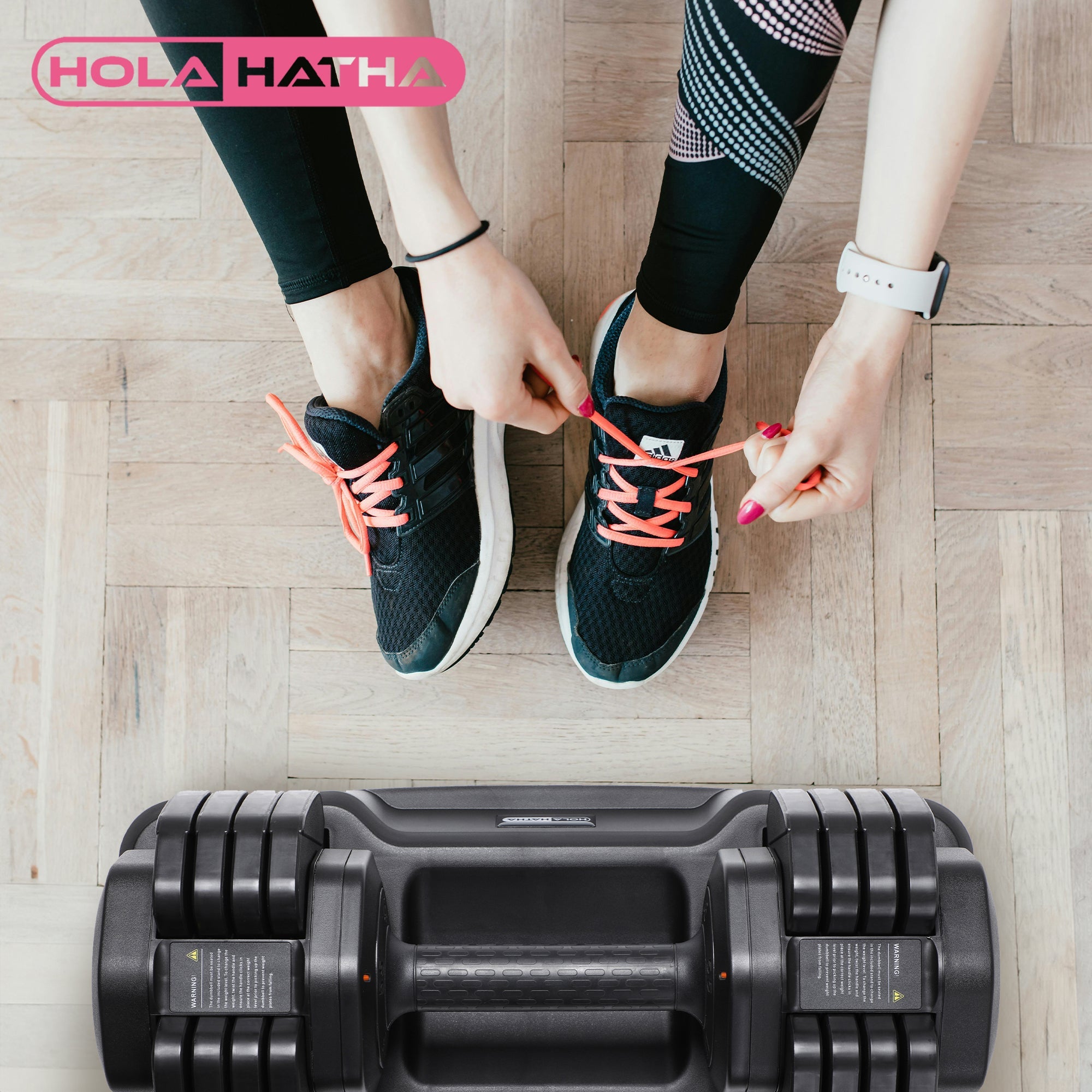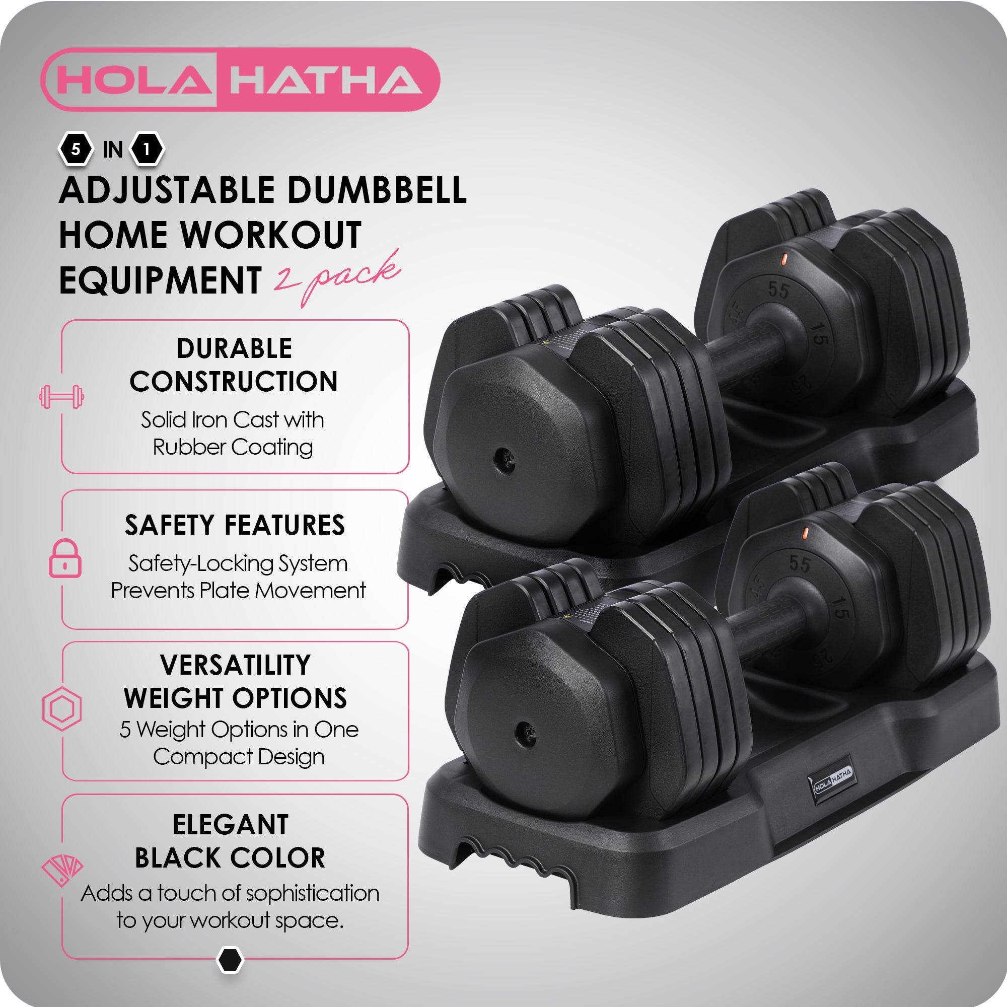 Achieve your fitness goals with the 2-pack HolaHatha 5-in-1 Adjustable Dumbbell Home Workout Equipment.
