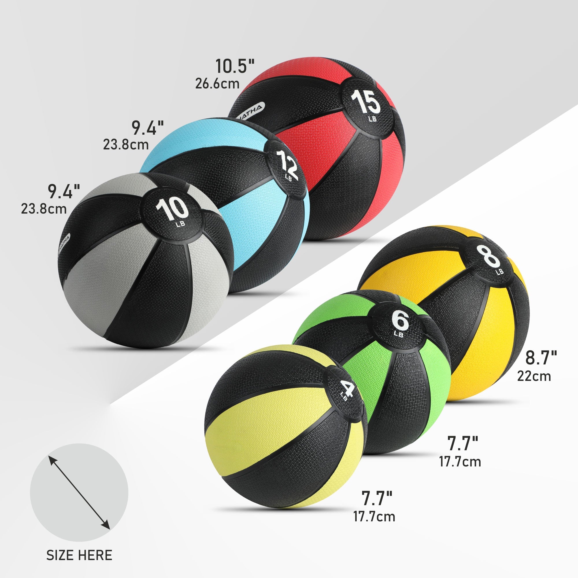 This exercise equipment is perfect for kids and adults of all ages with medicine balls ranging from 4 to 15 pounds. With the variety of weighted exercise balls you will be able to progress from lighter weights to heavier as you hit your fitness goals. This variety of weights benefits you and allows various strength levels to get the workouts they deserve. Featuring a lightly textured firm rubber surface, this weighted ball will provide a superior grip and long-lasting durability. The weight of each ball is clearly labeled on both sides so you won't mix up which weight you are working out with.