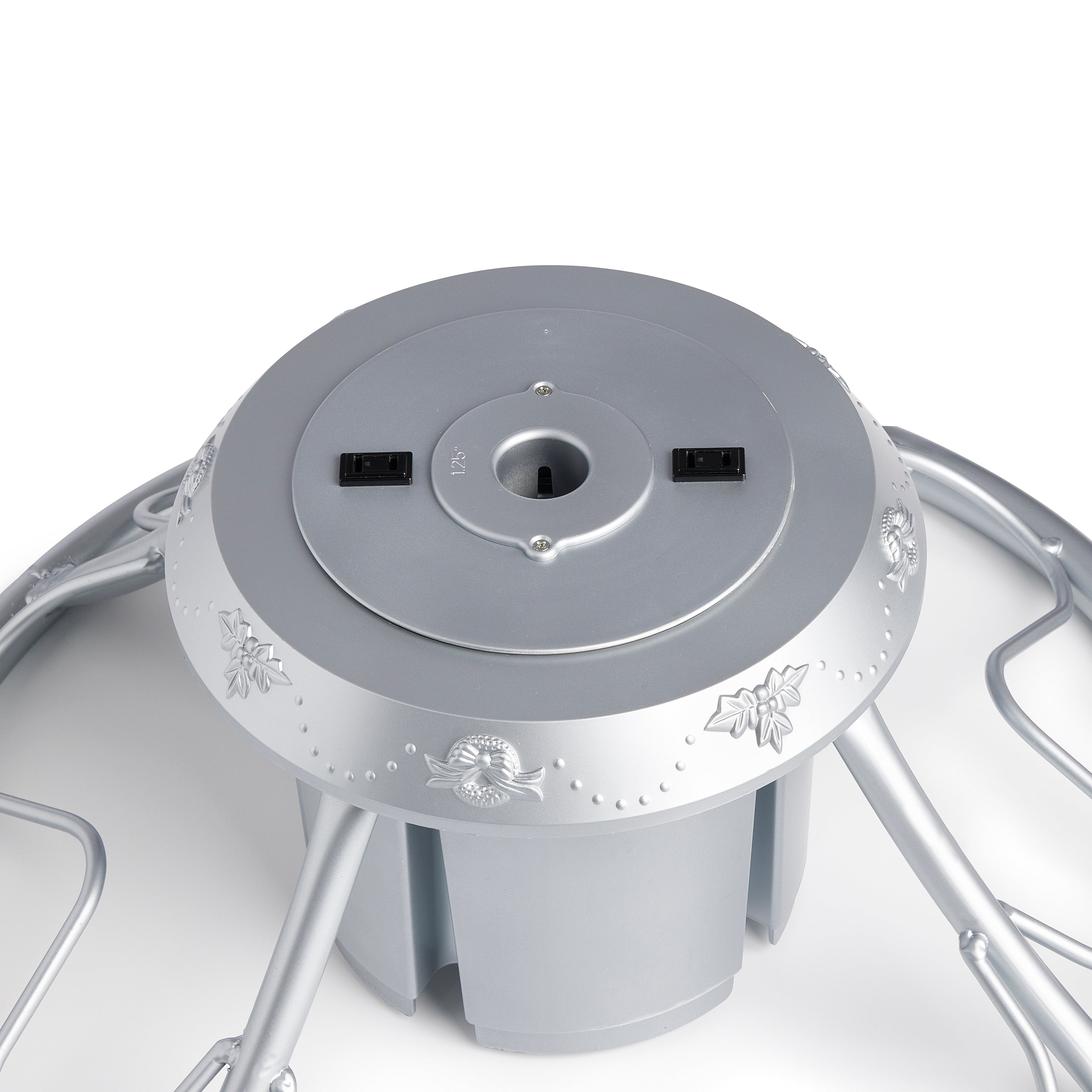 Your beautifully decorated Christmas tree deserves to be shown off. Featuring an innovative design, this stand allows for full 360-degree rotation for added holiday cheer so every side of your tree is seen. Simply plug the tree cord into the base and plug the base cord into the outlet for easy use. This tree stand is crafted from durable metal for lasting strength and provides convenient storage in your home or garage when the holidays are over.