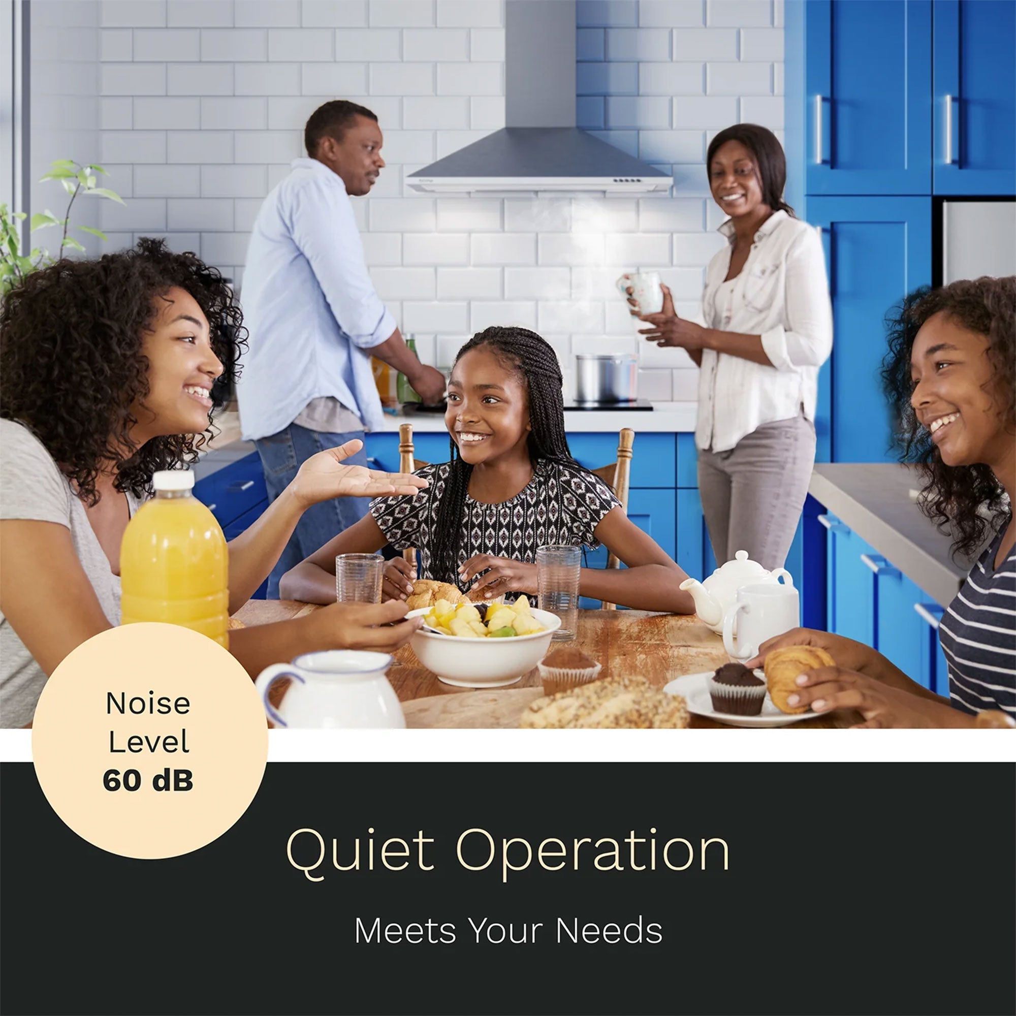 • Range hood can be vented horizontally or vertically, and the chimney's height can be adjusted to fit any kitchen