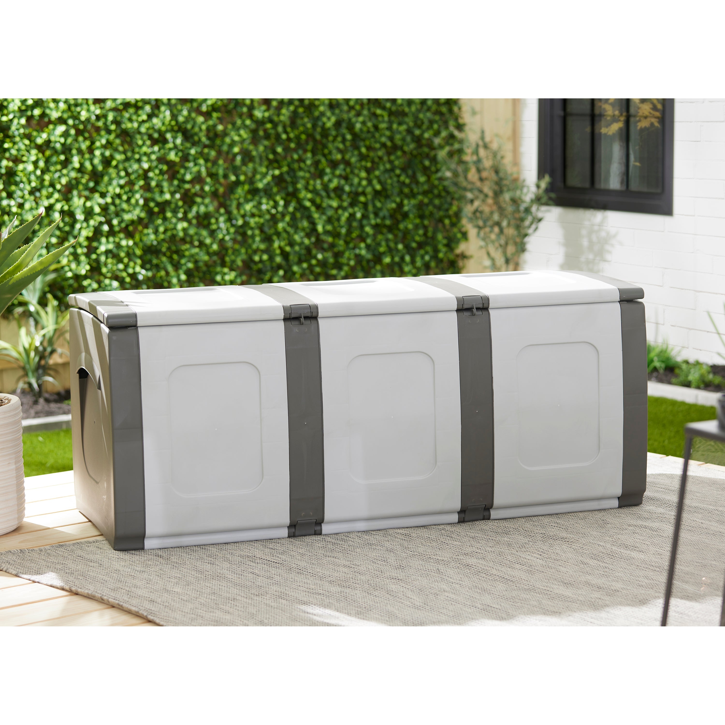 Versatility is key, and this plastic storage chest provides ample storage space for throw pillows, patio furniture cushions, fireplace firewood, garage tools, toy room toys, and more. A padlock allows you to lock away items to keep your stored items safe and secure.