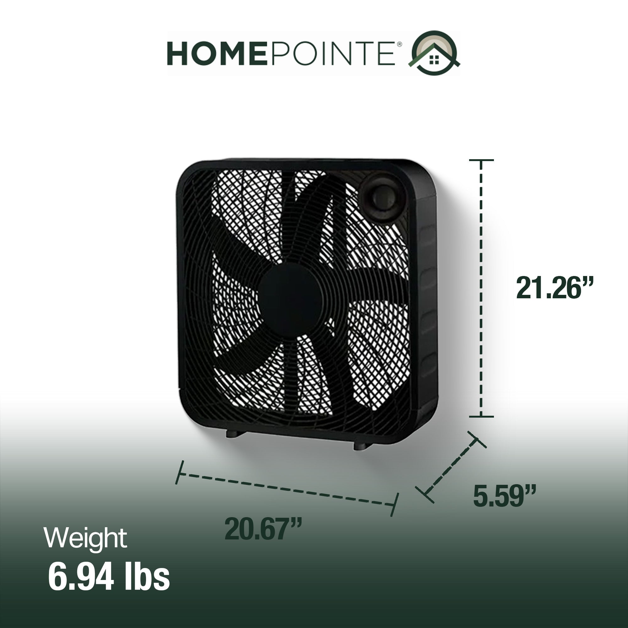 • Keep cool with HomePointe's 20-inch box fan in sleek black that delivers a refreshing airflow, making it your go-to solution for combating heat with ease