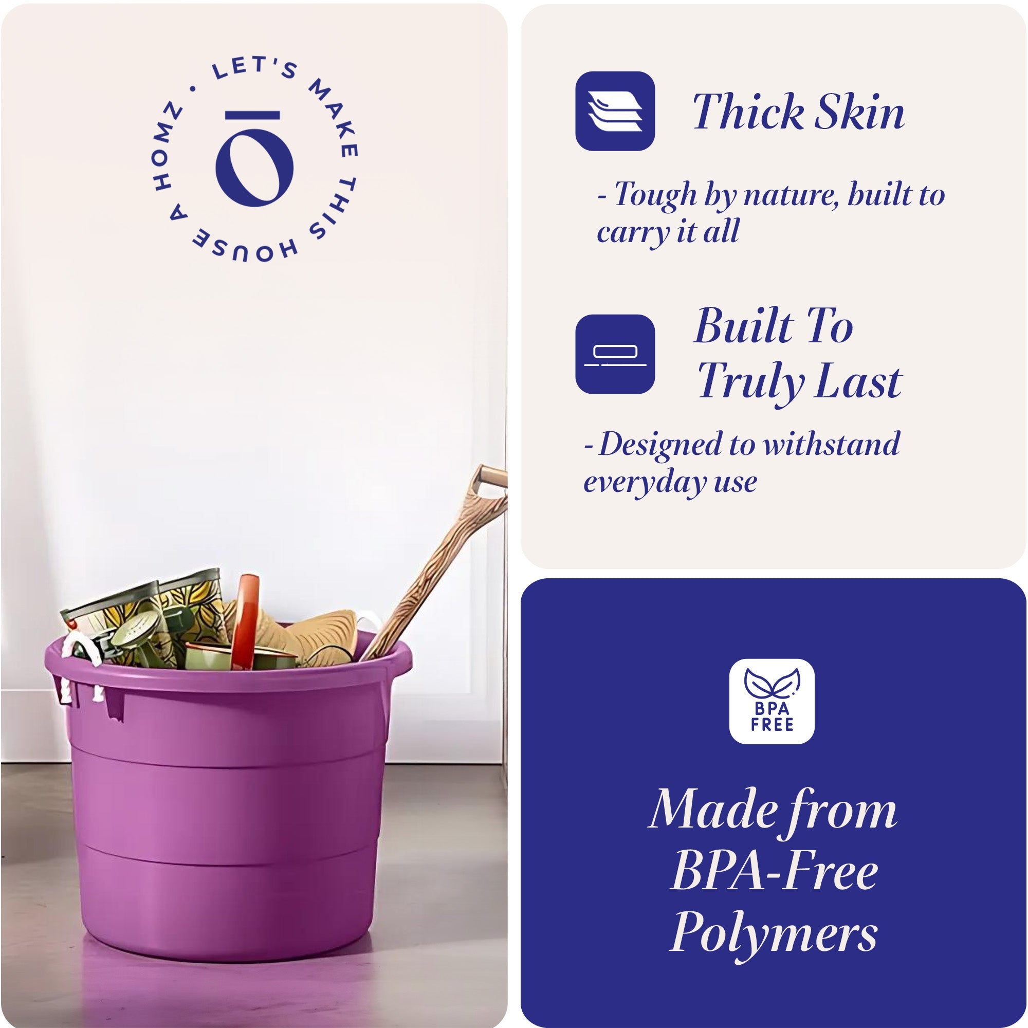 Homz 17 Gallon Indoor Outdoor Storage Bucket w/ Rope Handles, Orchid (2 Pack)