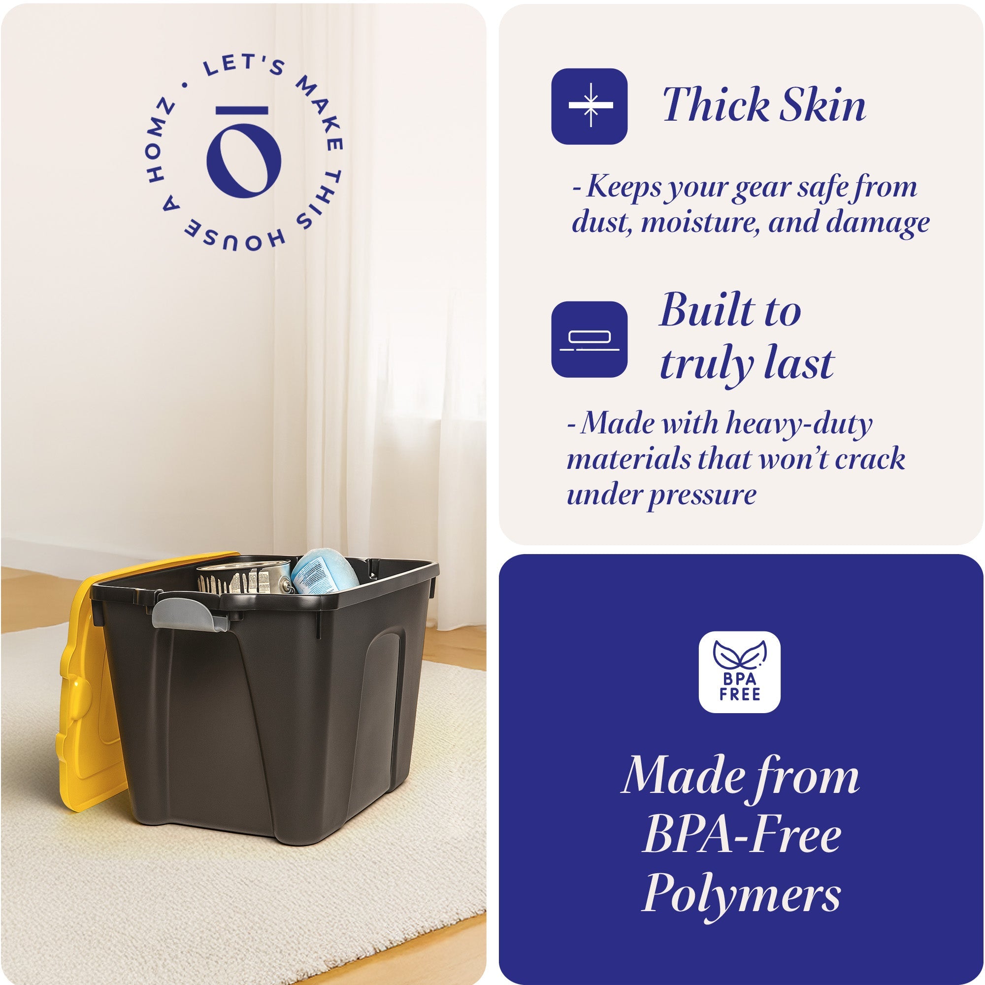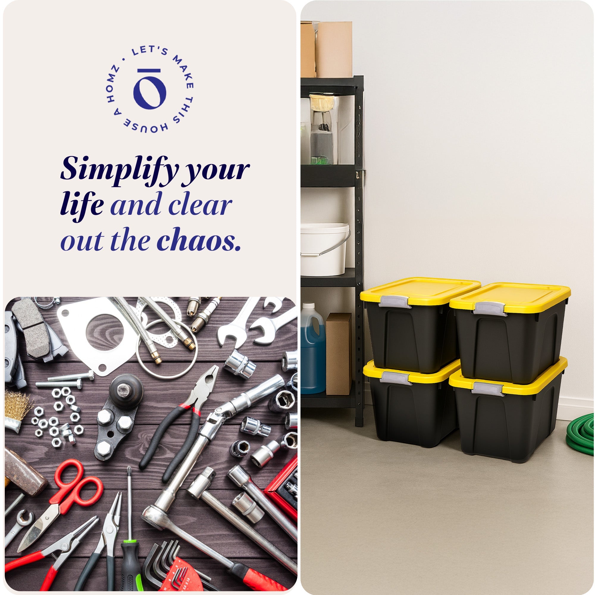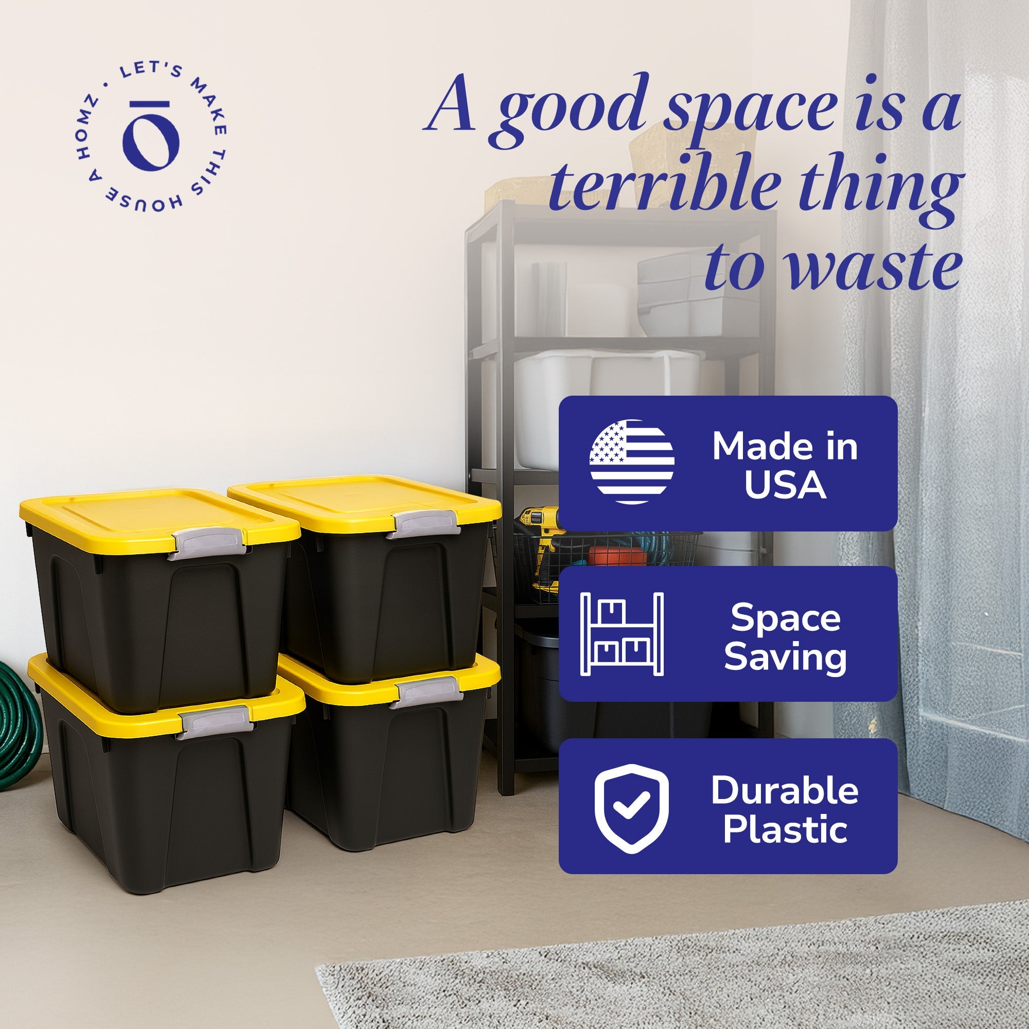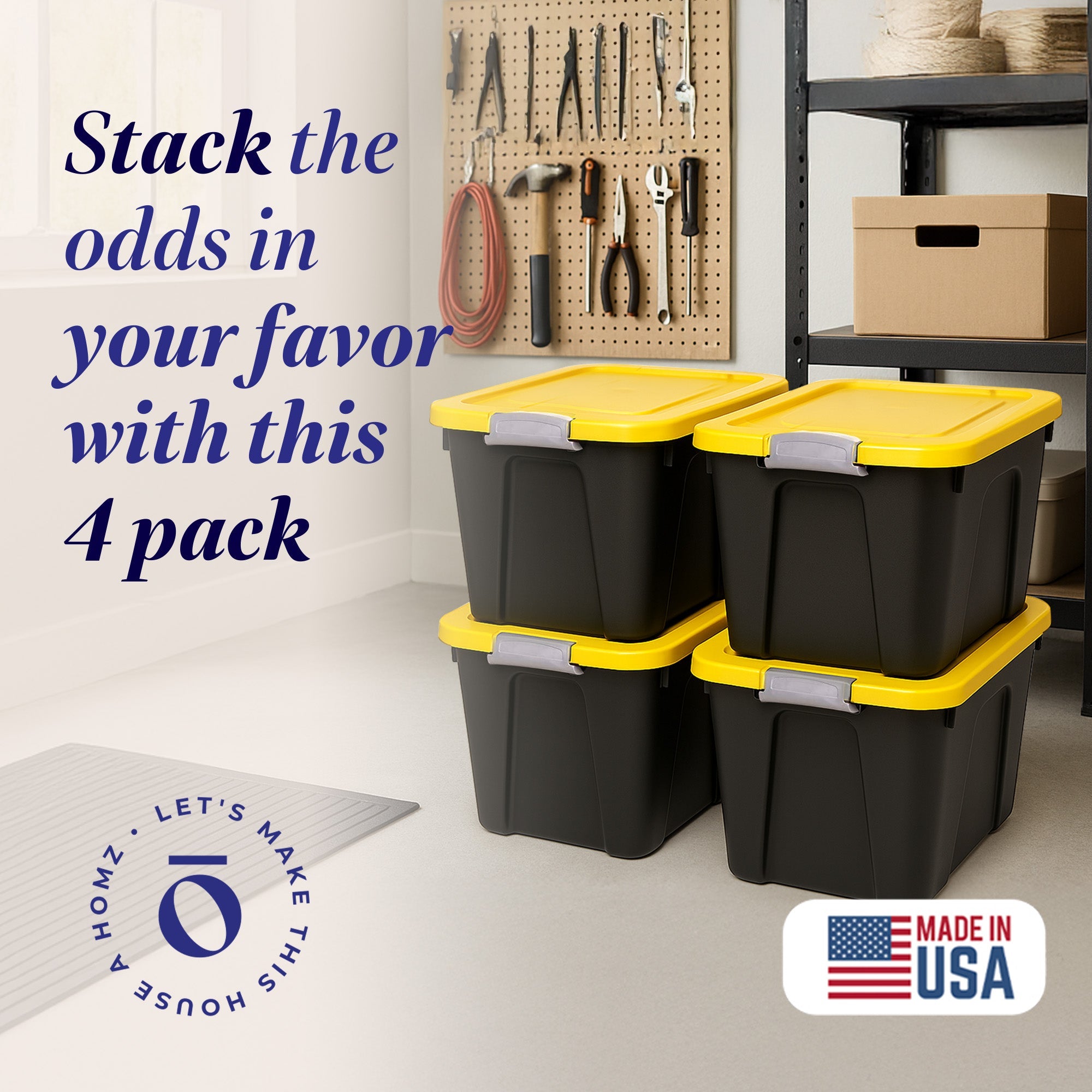 Homz 22 Gallon Durabilt Storage Container w/Latching Lid, Black/Yellow (4 Pack)