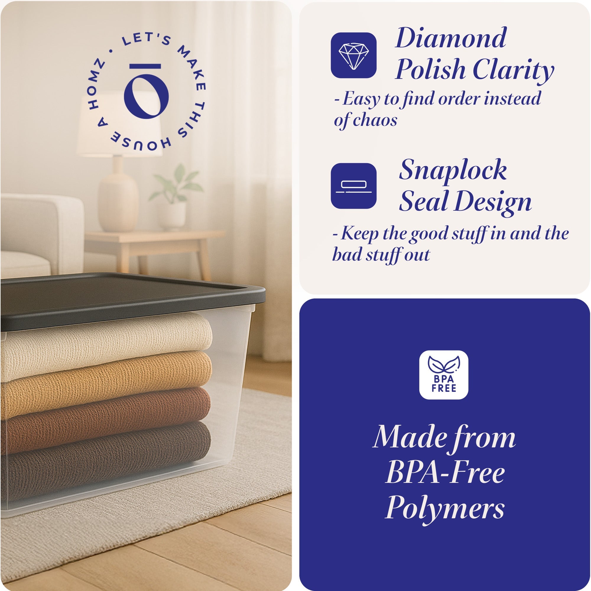 - Versatile, 56-quart capacity helps declutter playrooms, closets, home offices, and garage spaces