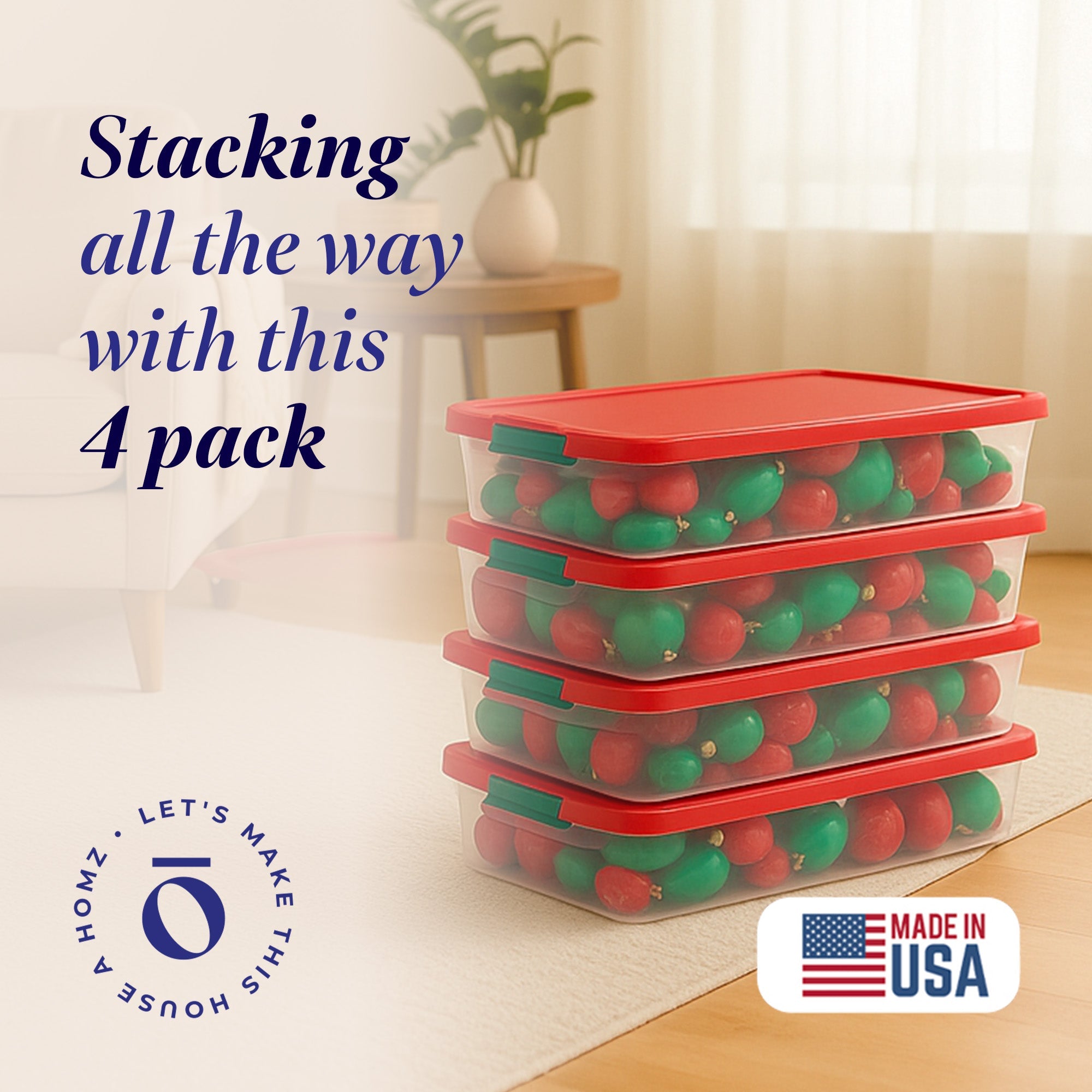 Save yourself from the stress that comes with constant mess with the 4-pack of HOMZ 60-Quart Latching Holiday Underbed Storage Containers.