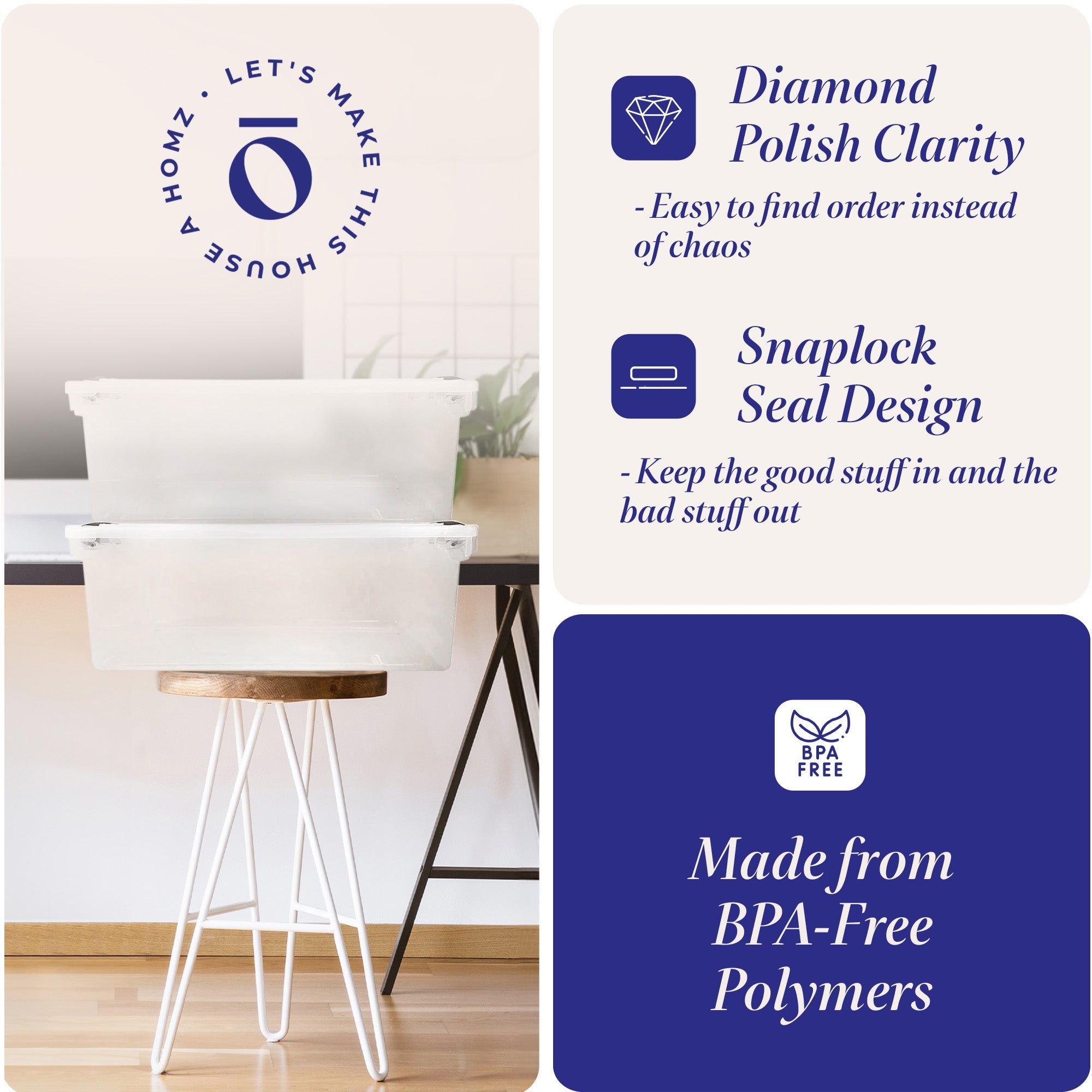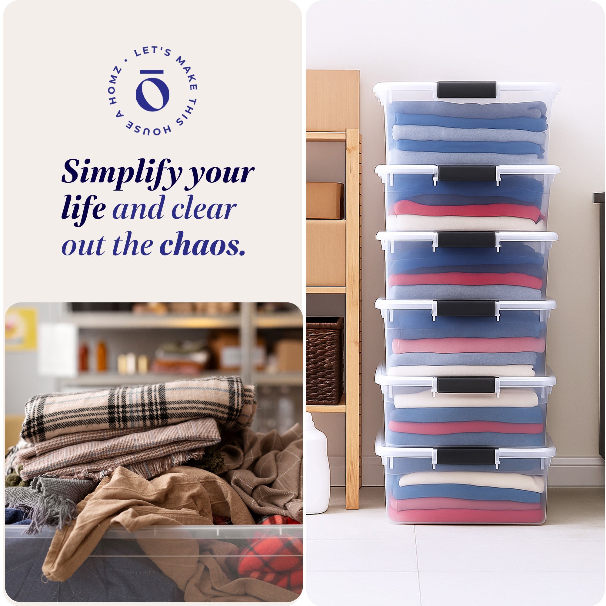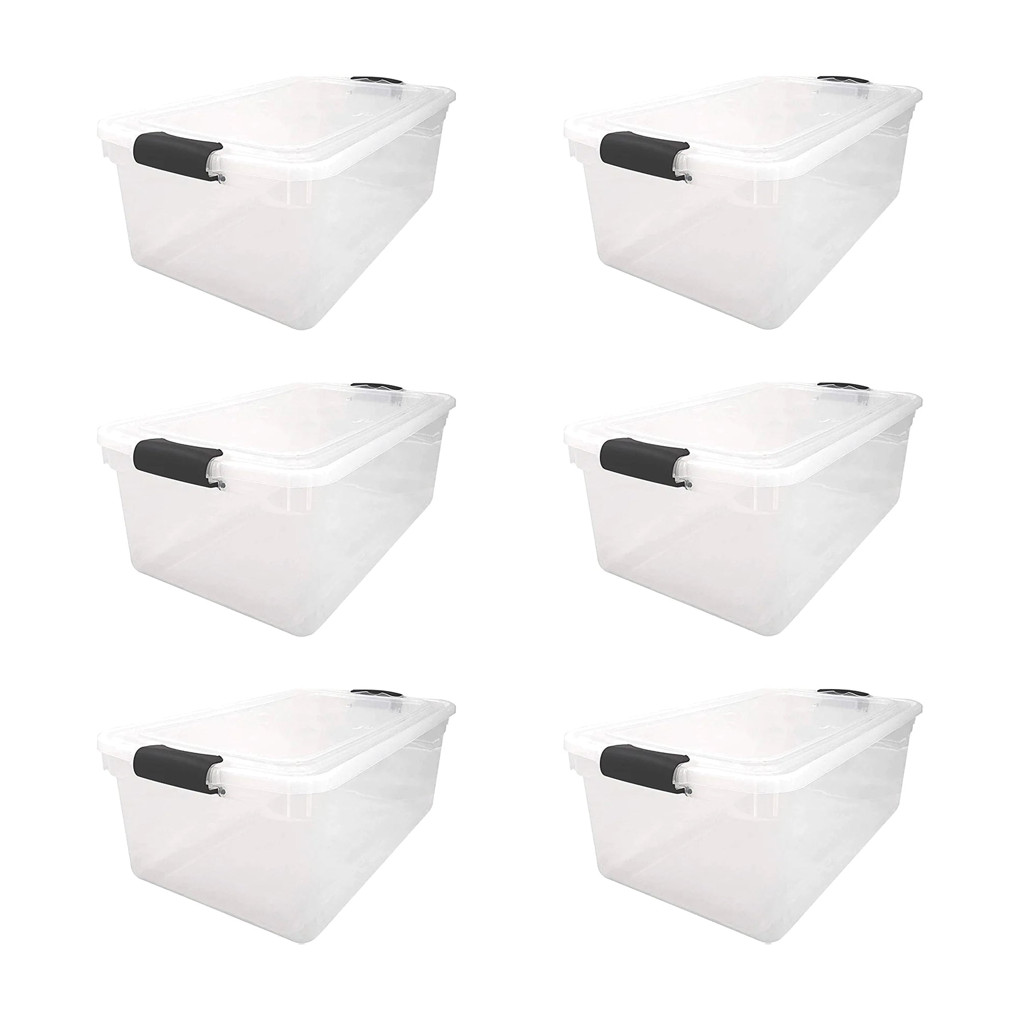 Homz 64 Qt Multipurpose Stackable Storage Bin with Latching Lids, Clear (6 Pack)