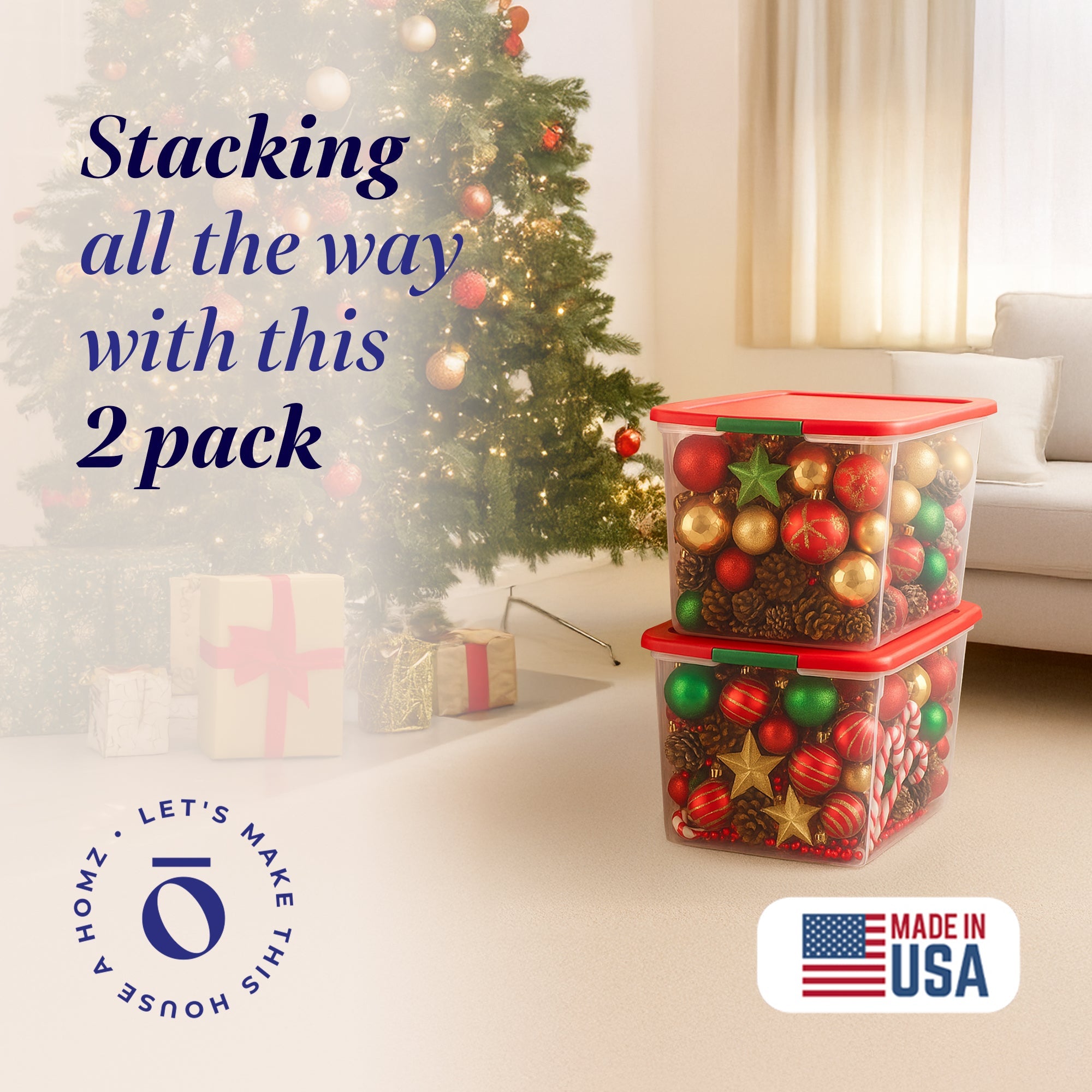 Homz 64 Qt Secure Latch Clear Plastic Storage Container Bin w/ Red Lid, 2 Pack