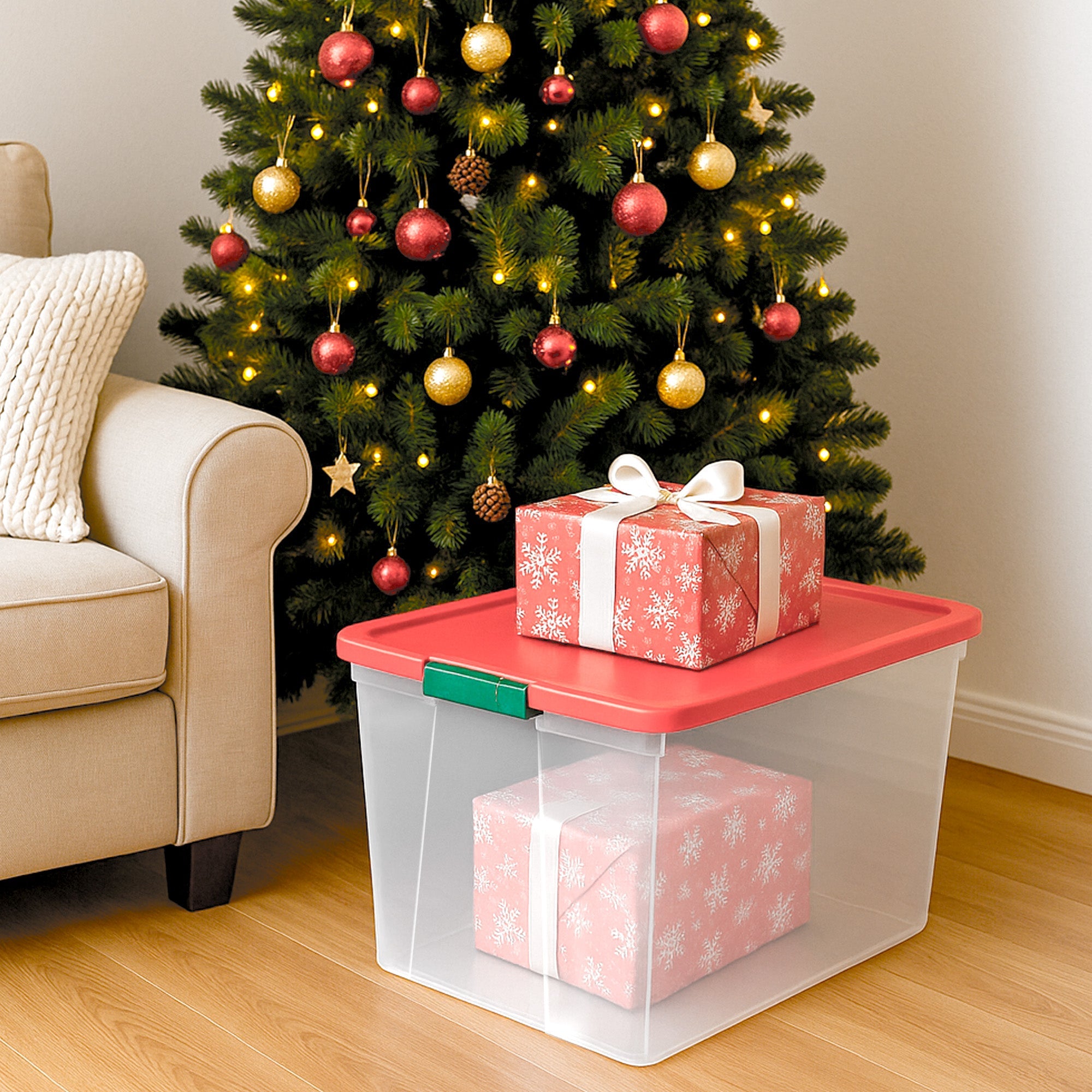 Take pride in your organizational skills and show off your tidy space thanks to this extra-large storage solution. With the secure latching handles, this storage container ensures to keep your decor, blankets, and more safe and sound. It's not always easy to keep track of stored items, but courtesy of the see-through design, you can quickly identify storage contents without the hassle of opening the container.