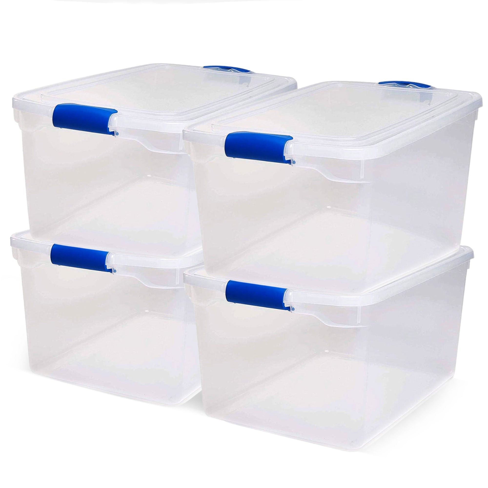 Homz 66-Quart Clear Plastic Stackable Storage Containers w/ Latch Lid, 4 Pack