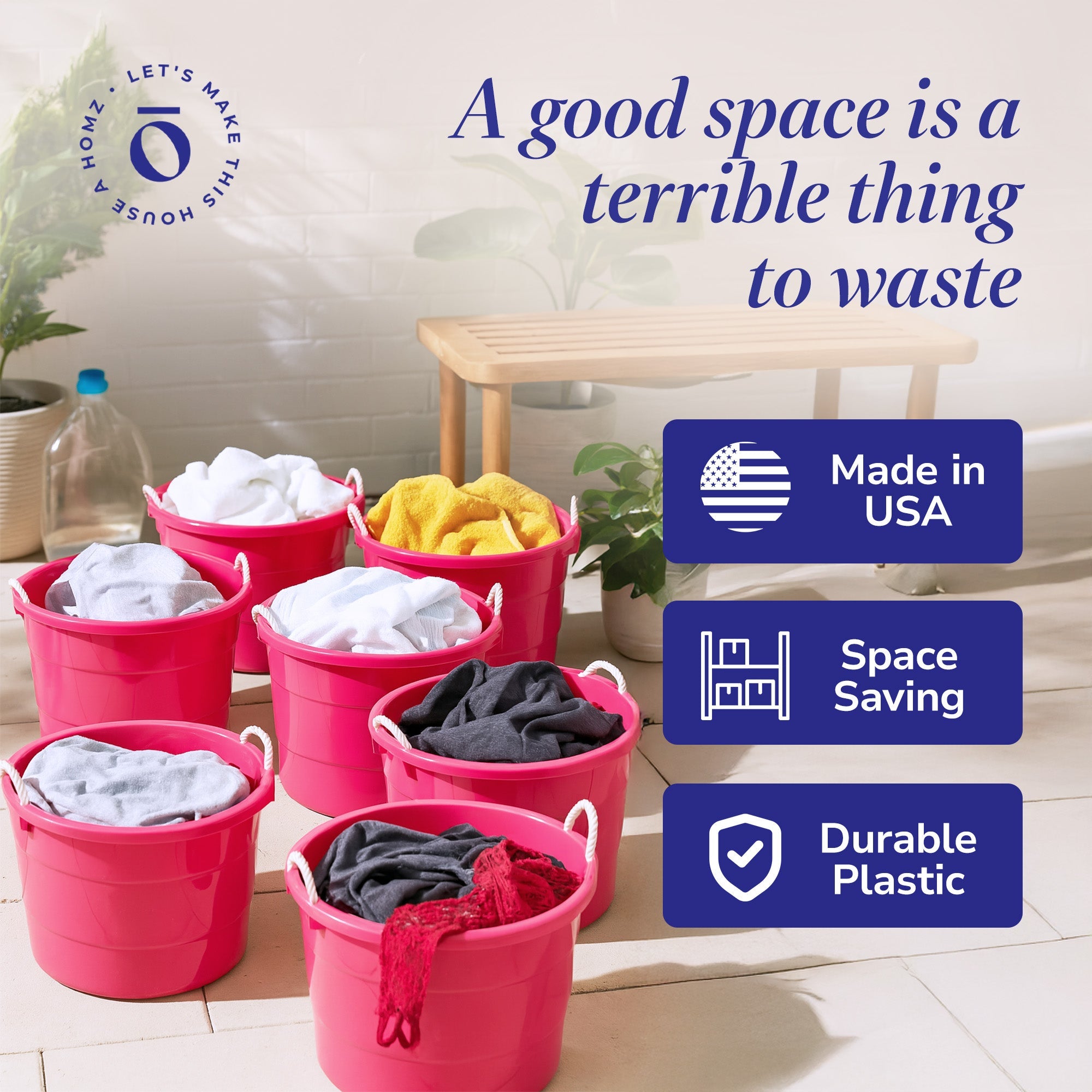 • Nest each bin inside the other when not in use for efficient storage and to maximize space