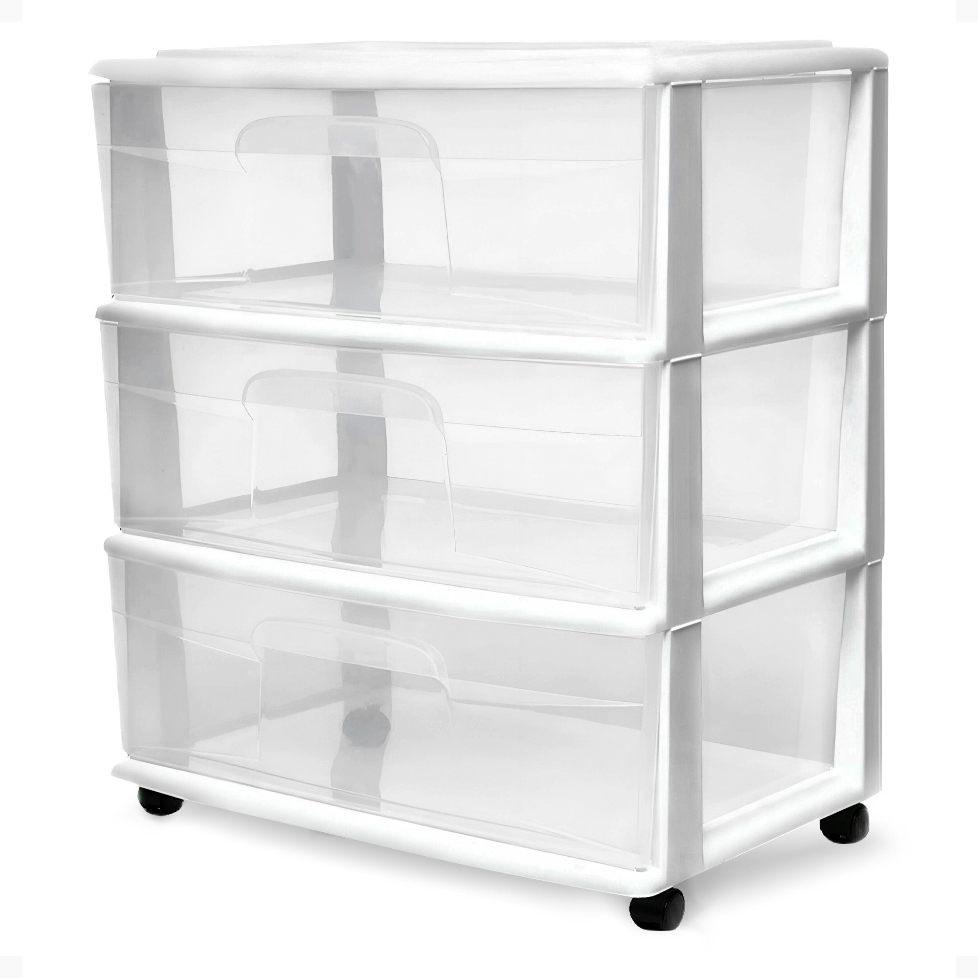 Whether you place it in the bathroom, your bedroom, the laundry room, or kitchen, make use of this convenient storage organizer. The heavy-duty white plastic frame keeps the 3 drawers in place so you can store everything from shoes and clothing to art supplies and holiday decorations. The clear drawer design makes it easy for you to quickly identify the contents without having to remove or open the container. A top recessed lid makes it easy to keep small items in place without rolling off.