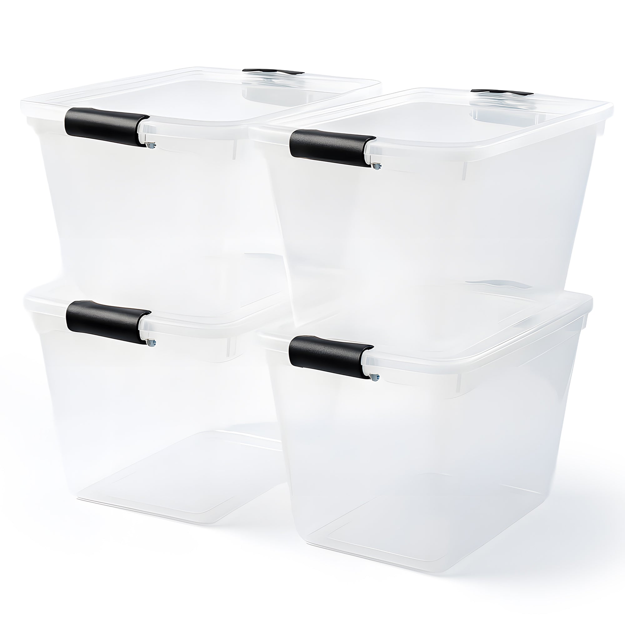 - Pack of (4) 31-quart storage bin ideal for clothing, office supplies, personal items, and more