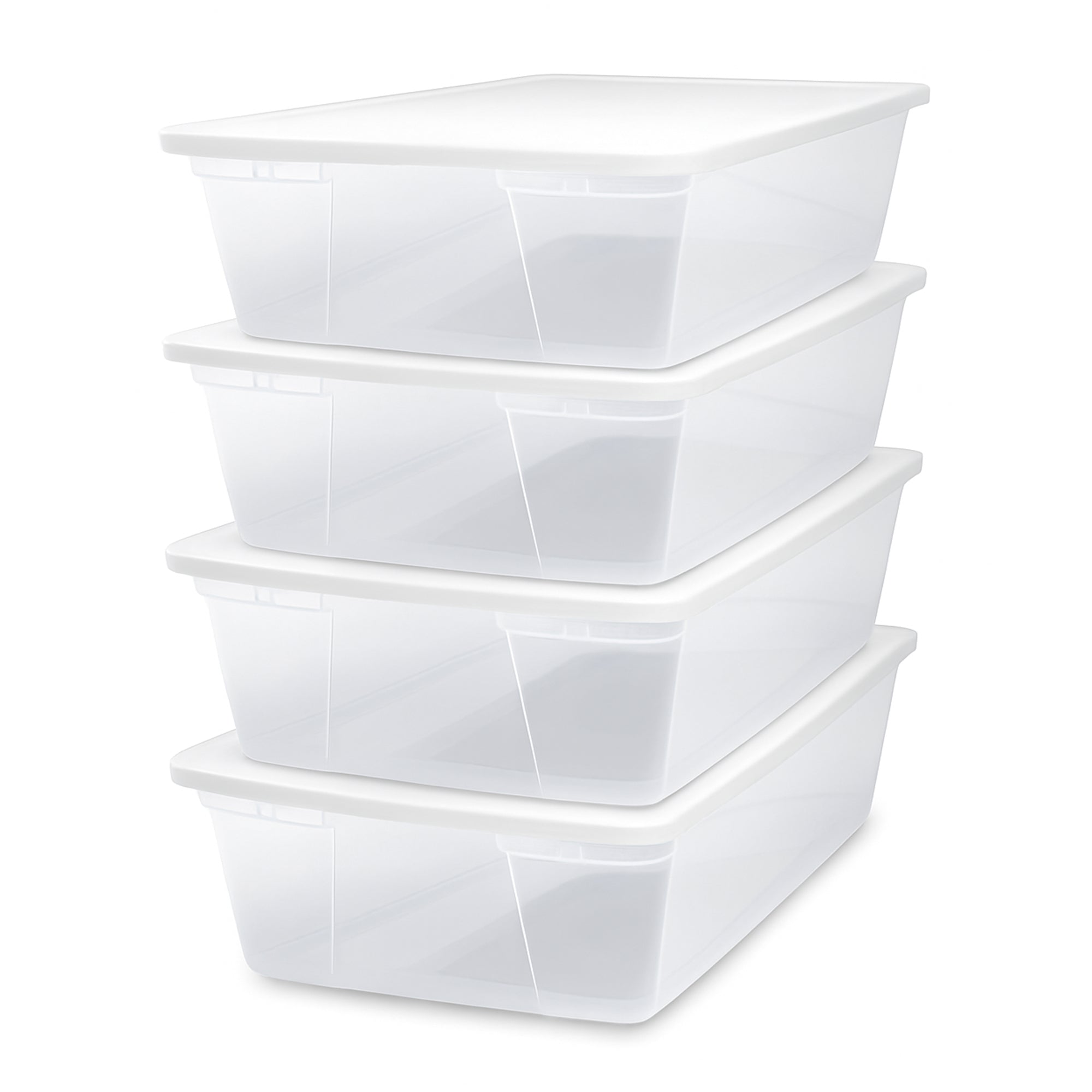 Get the most out of your space with the 4-pack of Homz Plastic Storage Containers. Ideal for storing away holiday decor, shoes, office supplies, kitchen utensils, and so much more, the opportunities with these totes are endless.