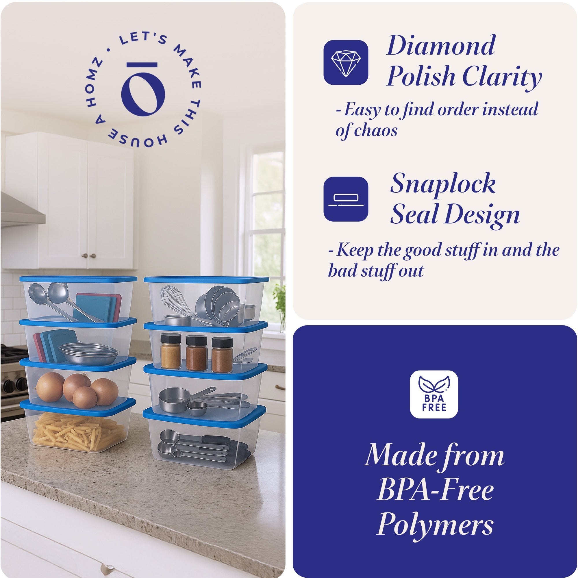 Homz Snaplock 6 Qt Stackable Plastic Storage Container w/ Lid, Blue (10 Pack)